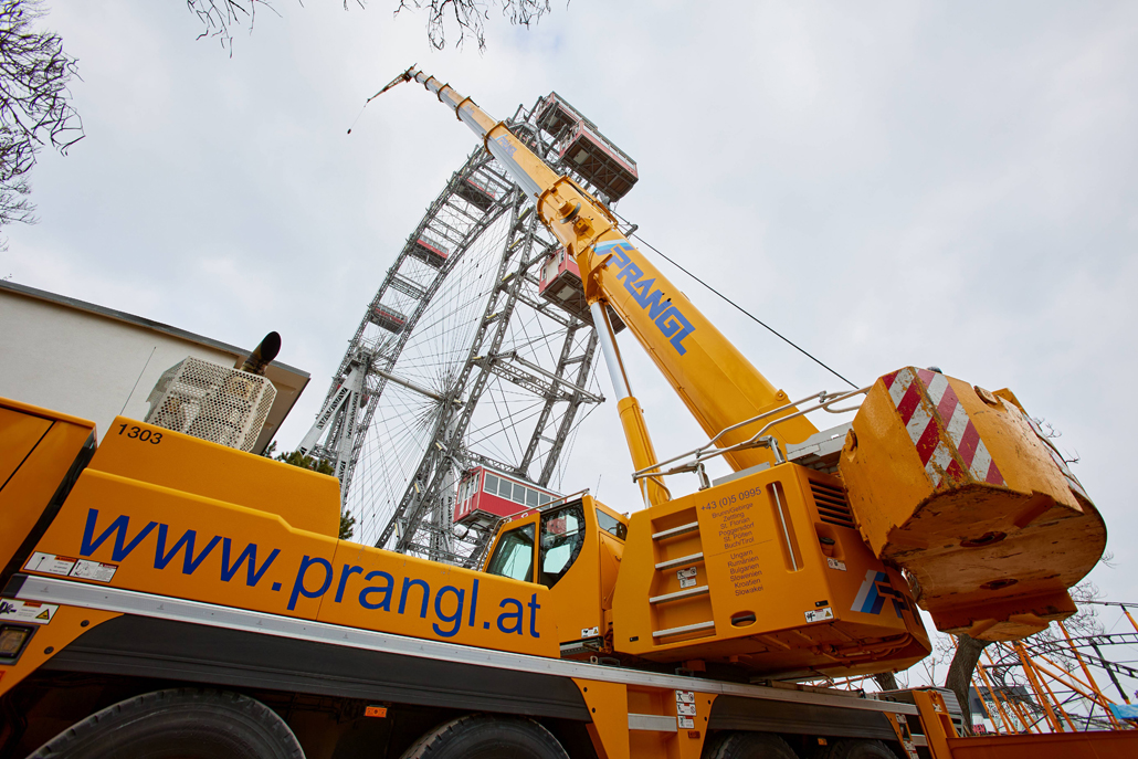 Preparations for the actual crane operations also challenged the experience of the specialists in yellow and required that a separate crane parking site be readied - with concrete piles driven 8 metres deep alongside the Traisen. Furthermore, it transpired that an underground gas pipeline had been laid in the vicinity of the crane parking area, for which all ambiguities had to be clarified and experts consulted for investigation and approval prior to starting the works. The crane erection itself also proved tricky due to the limited space on site.