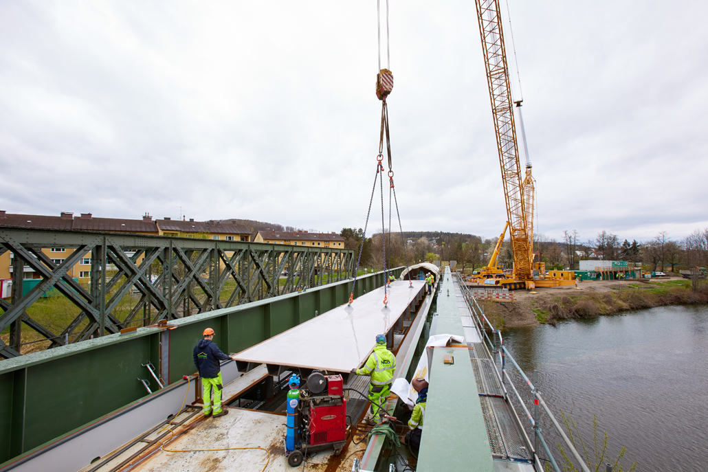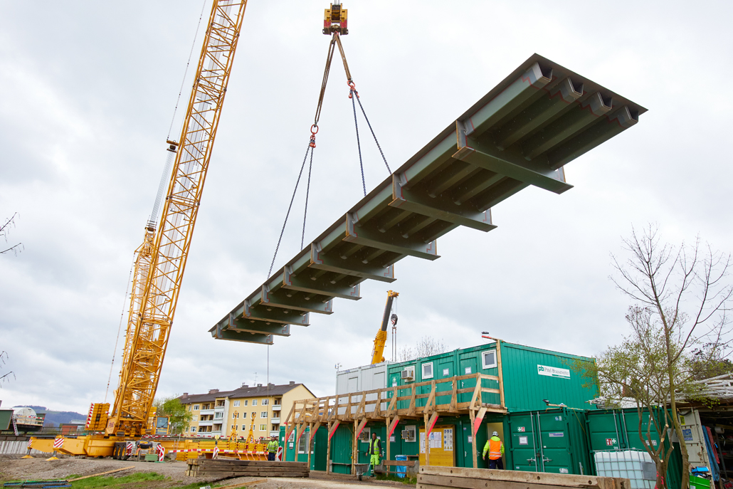 An ÖBB railway bridge crosses the Traisen river close to the Kreisbach/Wilhelmsburg railway station. Roughly 125 years after its construction, it was time to replace the original structure. The new truss structure was prefabricated and delivered in parts by a specialist bridge construction company. Prangl was commissioned to play a leading role in the bridge building project.