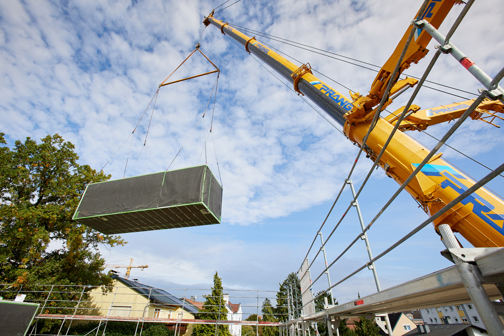 Prangl took on the assembly of a residential building in Amstetten, which consists entirely of turnkey modules.