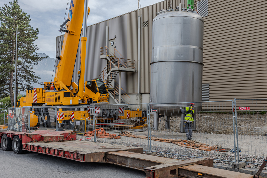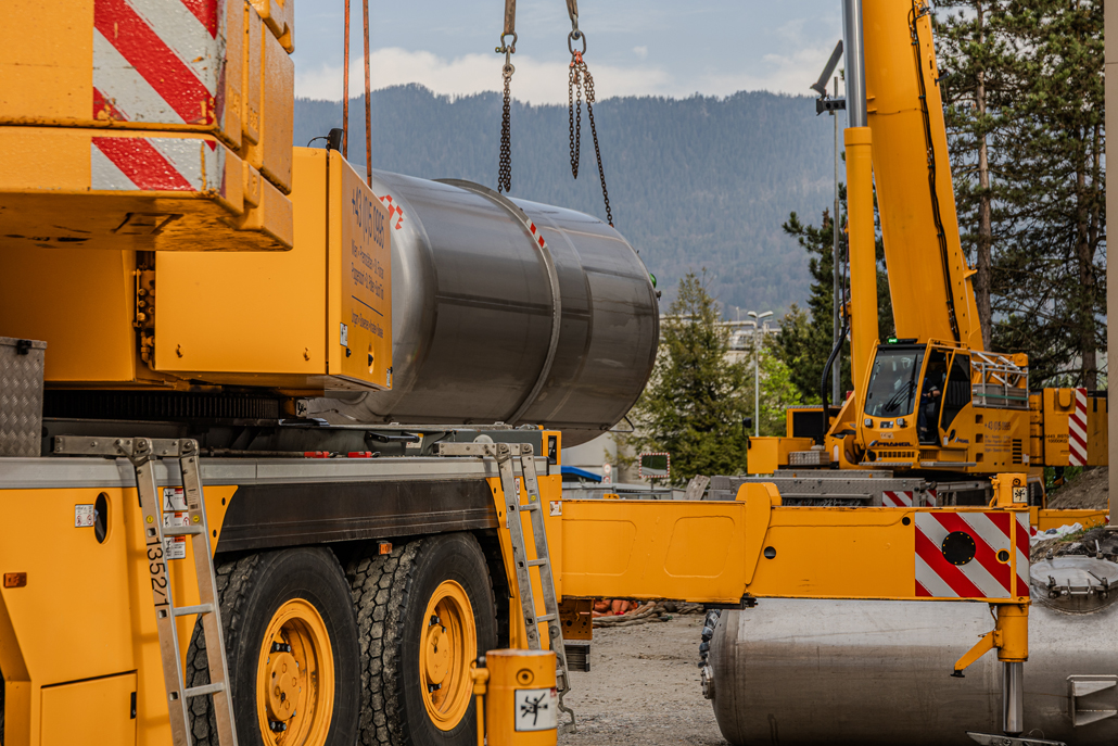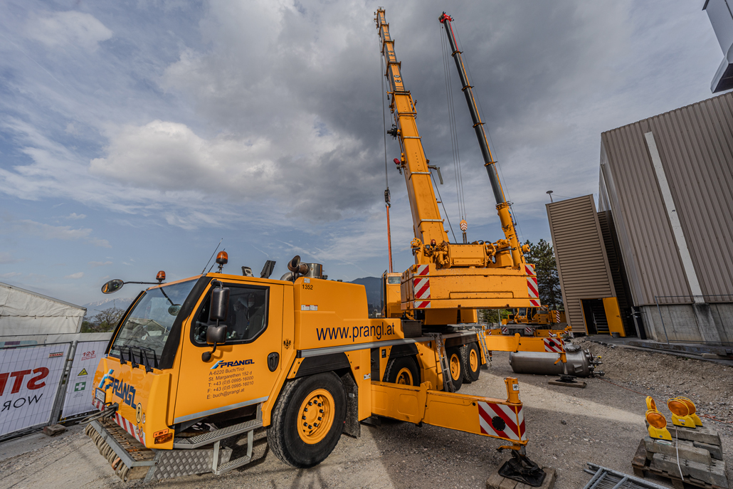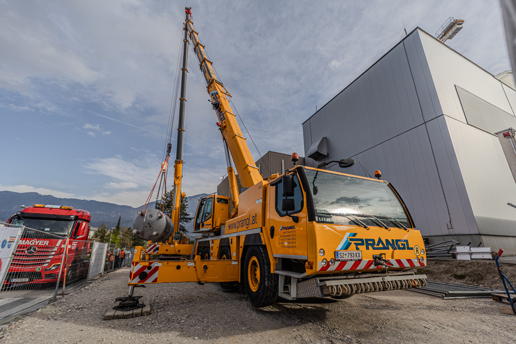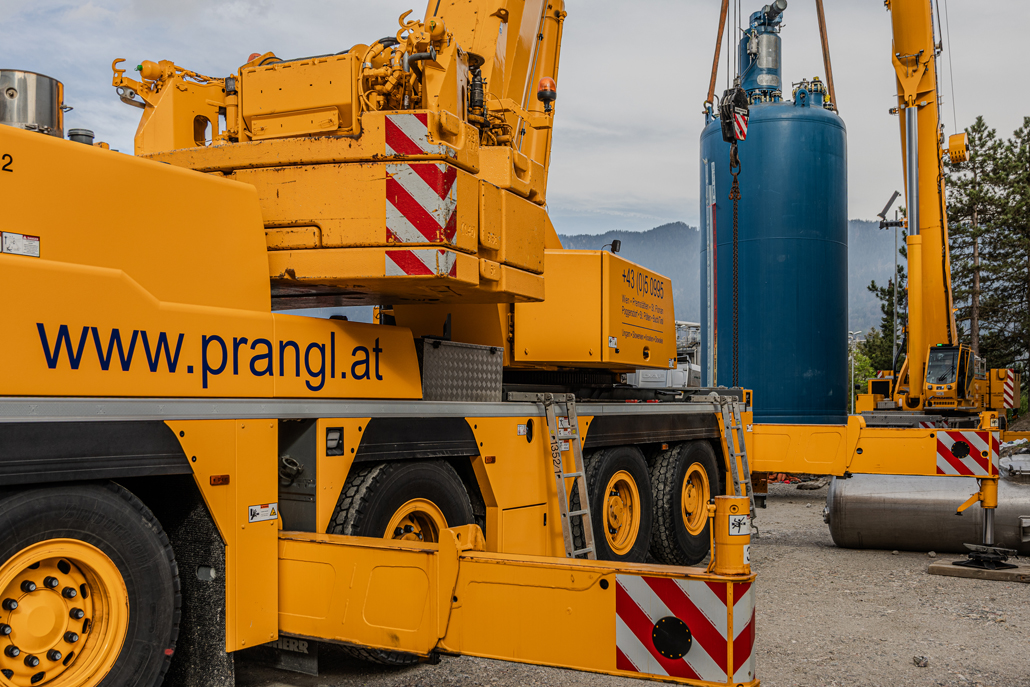 The Prangl team had a total of 53 silos of different sizes waiting to be removed and transported away. The weights ranged up to 20.7 tonnes. The containers had diameters of up to 4.2 metres and lengths of up to 12.5 metres. The biggest challenge was the safe workflow and the coordination of different professionals. The client attached great importance to this. For this reason, the situation was assessed in advance by Prangl's HSEQ experts on site and only then was the exact work process determined.