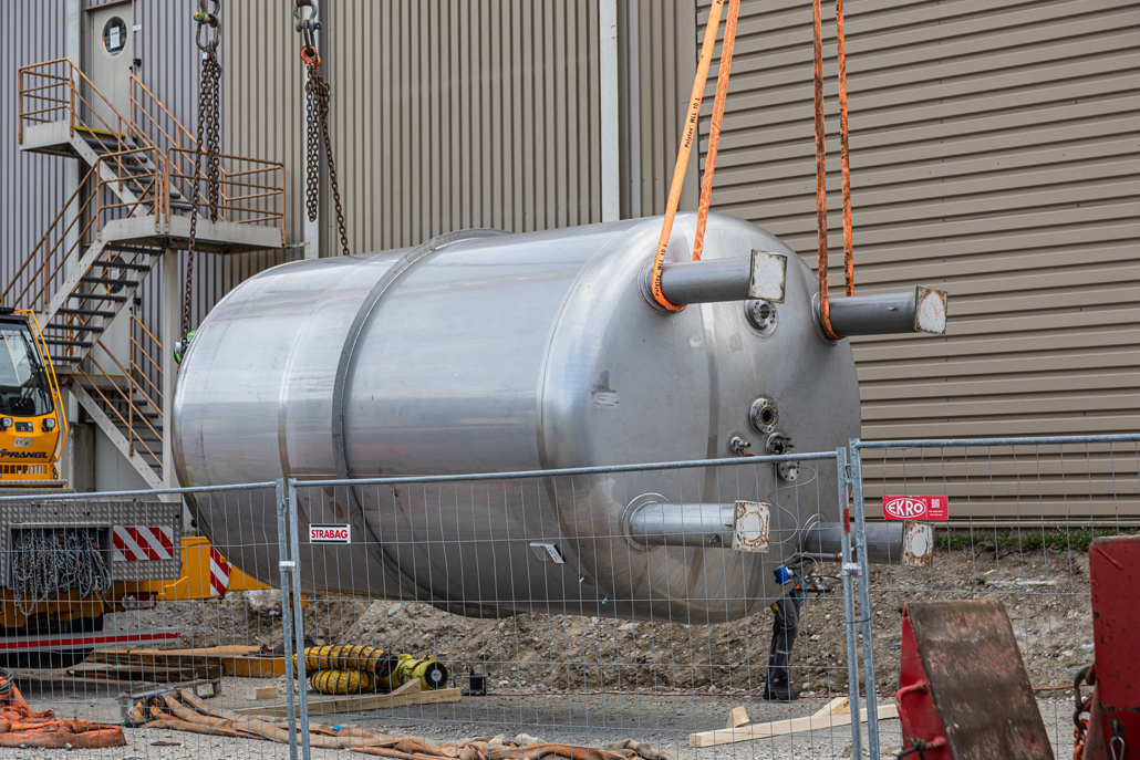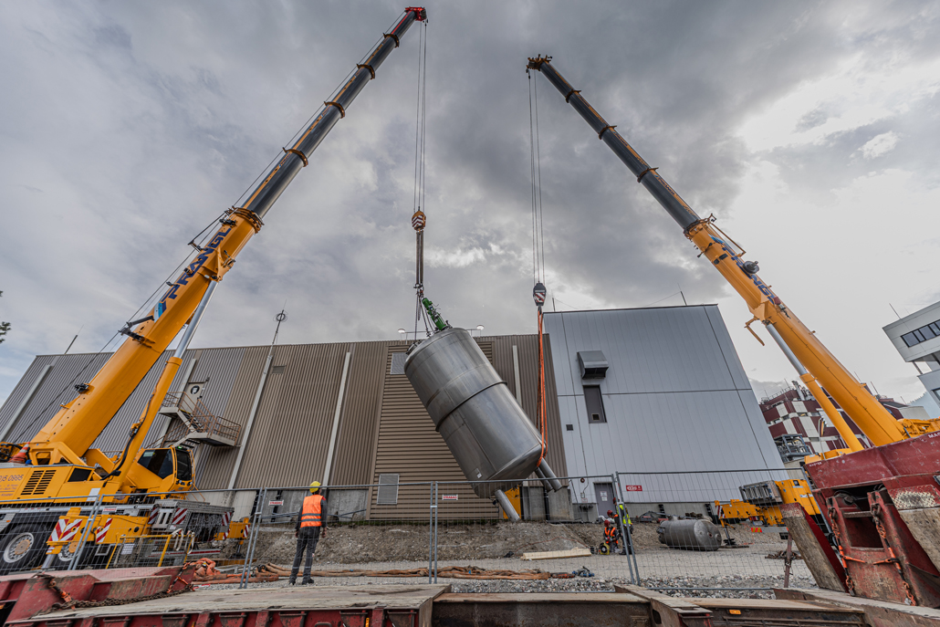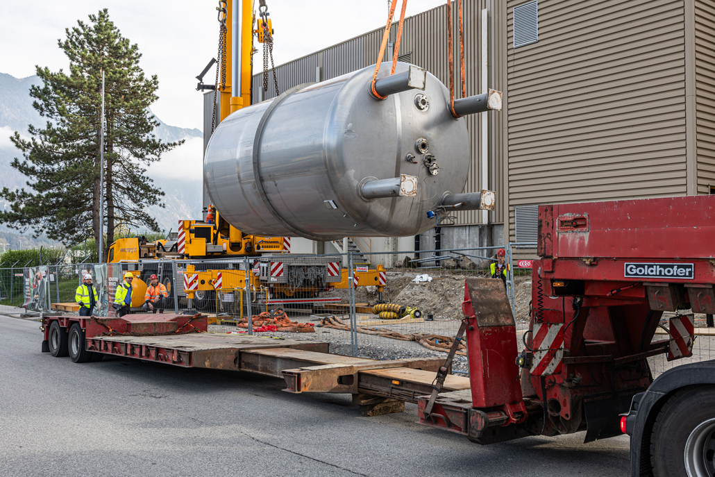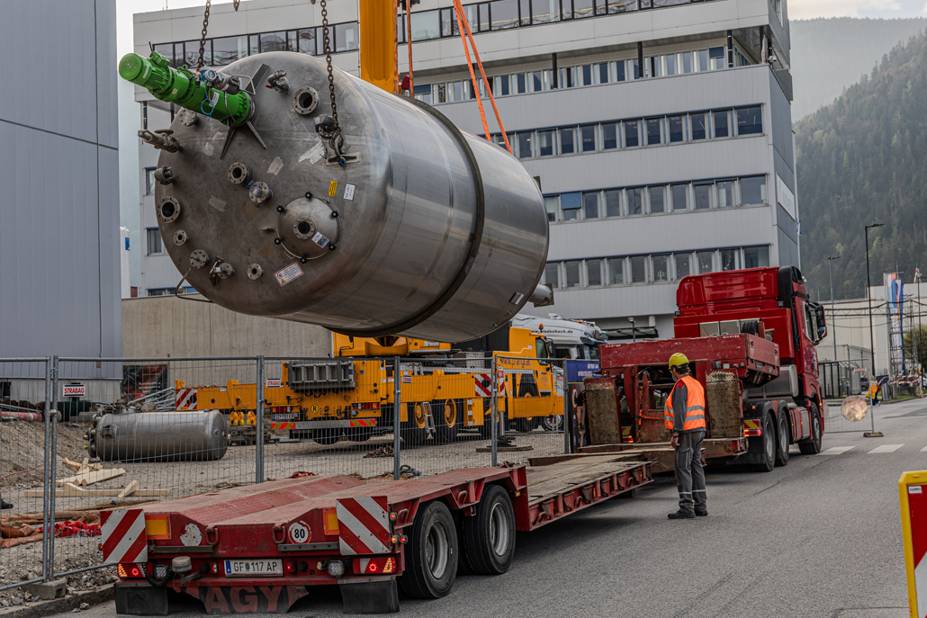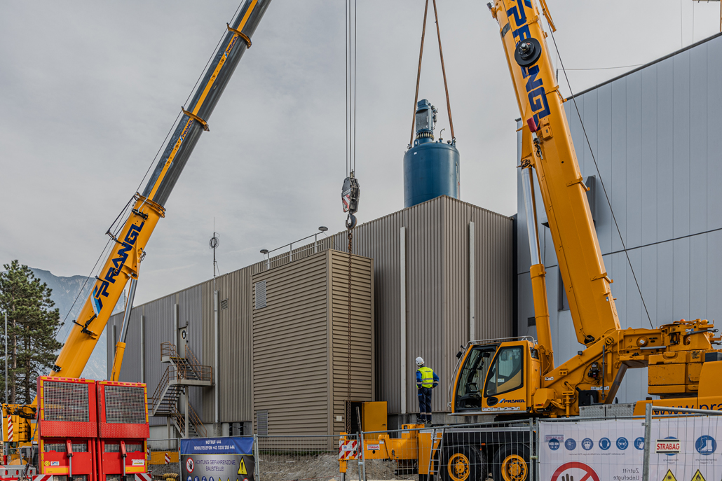 The Prangl team had a total of 53 silos of different sizes waiting to be removed and transported away. The weights ranged up to 20.7 tonnes. The containers had diameters of up to 4.2 metres and lengths of up to 12.5 metres. The biggest challenge was the safe workflow and the coordination of different professionals. The client attached great importance to this. For this reason, the situation was assessed in advance by Prangl's HSEQ experts on site and only then was the exact work process determined.