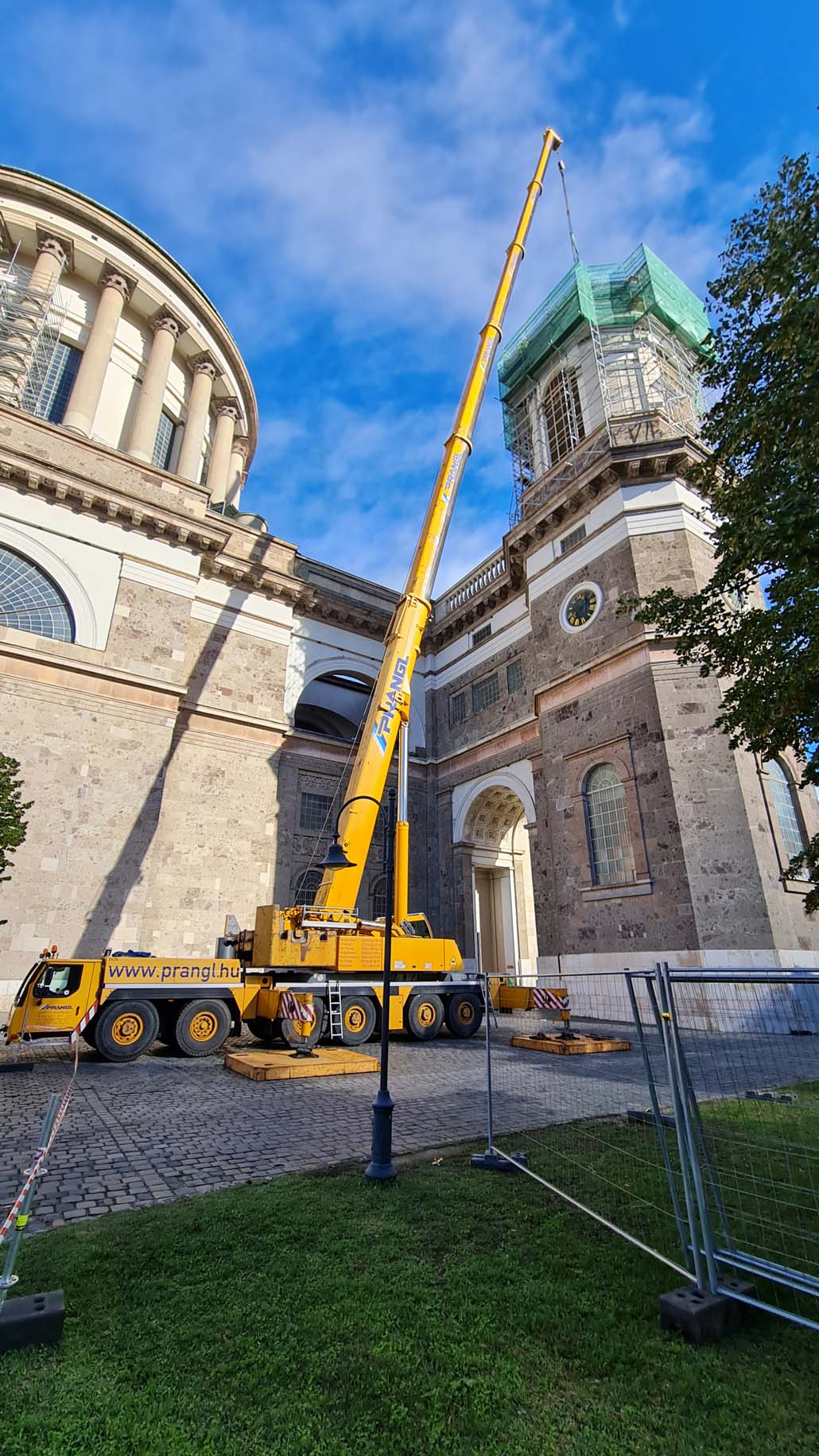 The latest achievement of the Prangl fleet was used here for the first time: a 700 tonne telescopic crane; a mobile heavy-duty crane of the latest generation. This 8-axle crane stands out with its impressive load-bearing capacity values, exceptional power and high flexibility - ideal for the demands of this project. The crane was optimally prepared for the requirements with TY-anchoring, a 69 metre main boom and 120 tonne ballast.