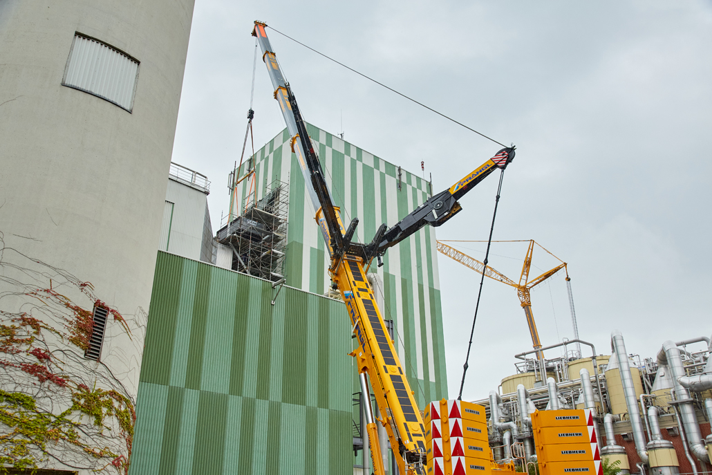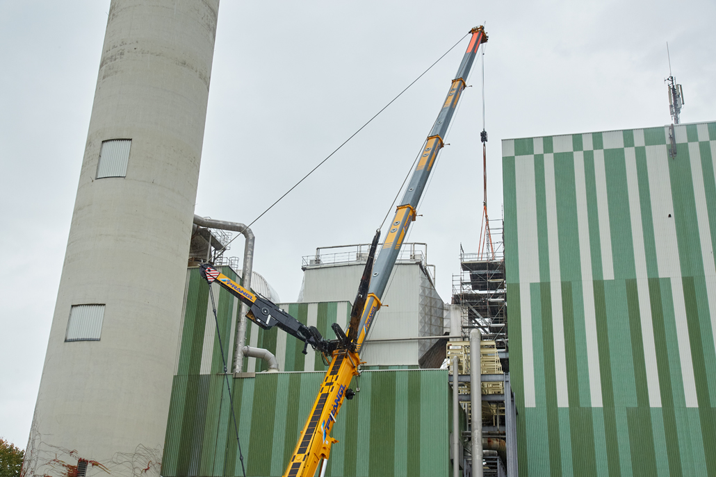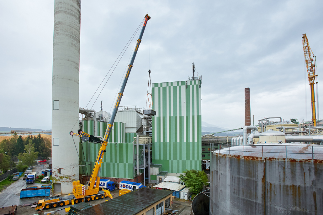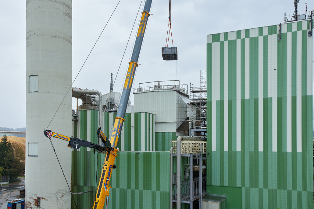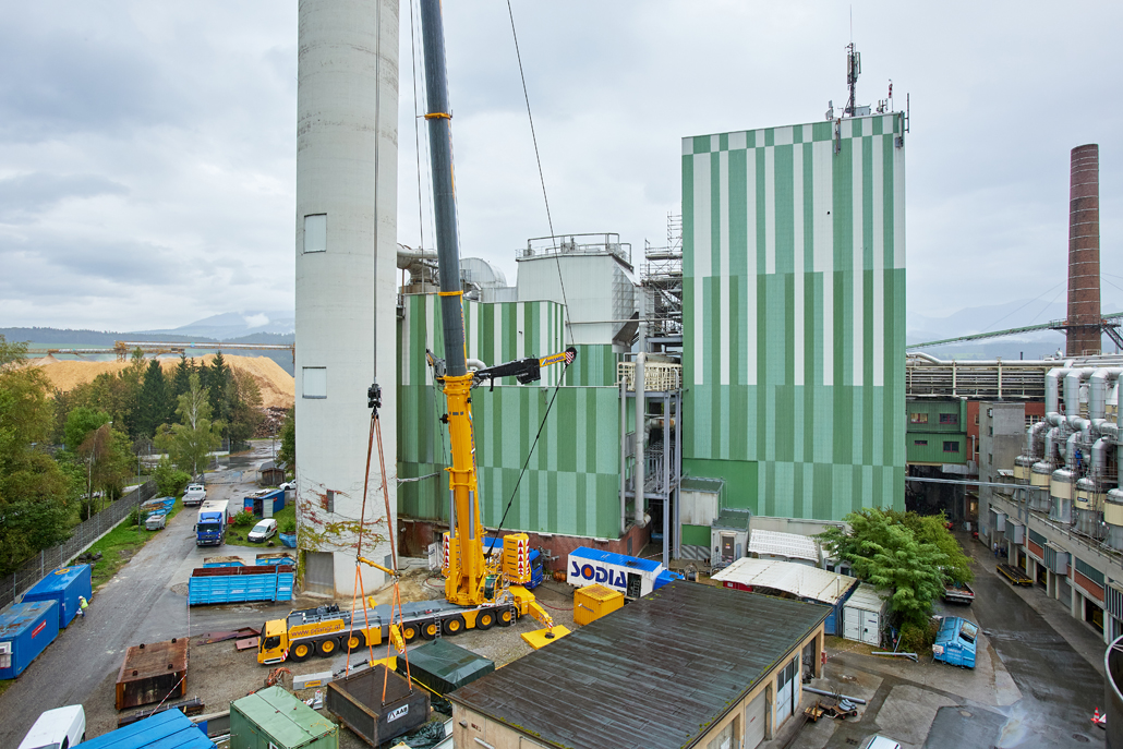 The Prangl team carried out a special assignment at Hallein: AustroCel, a manufacturer of environmentally-friendly pulp and bio-energy, commissioned the family business with demanding lifting work. The goal of the project was to replace massive heat exchanger packs - each 5 metres long, 3.4 metres wide, 1.6 metres high and weighing about 28 tonnes - which needed to be moved precisely and safely.