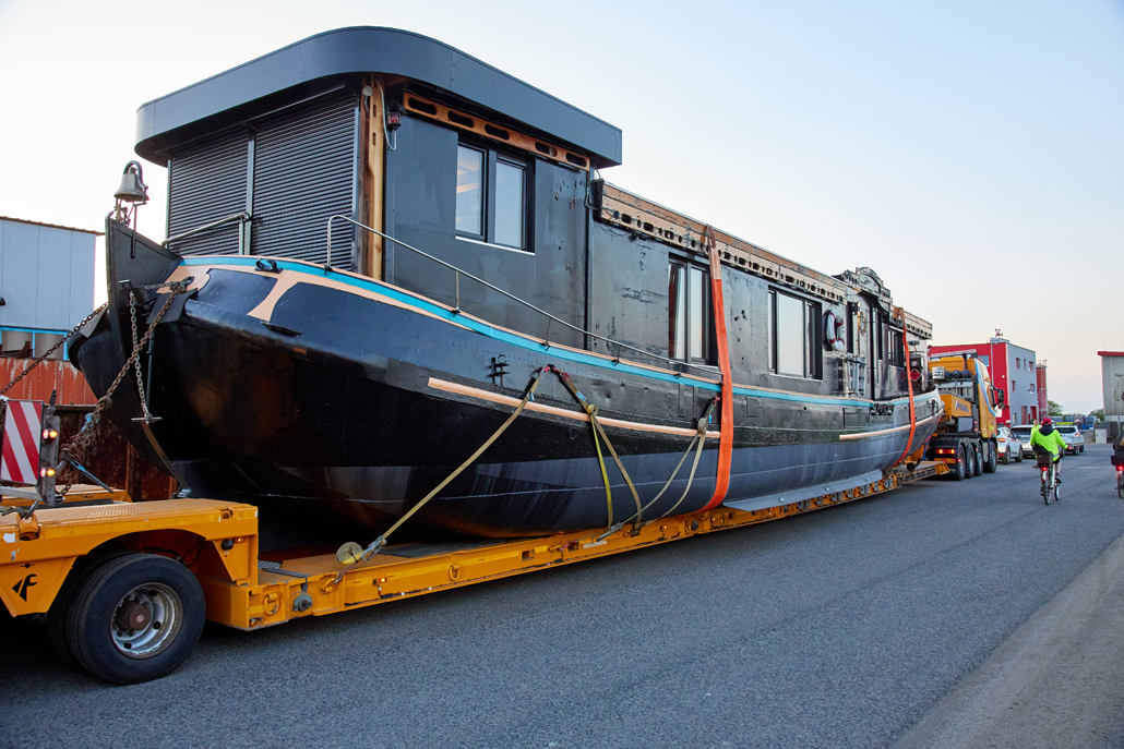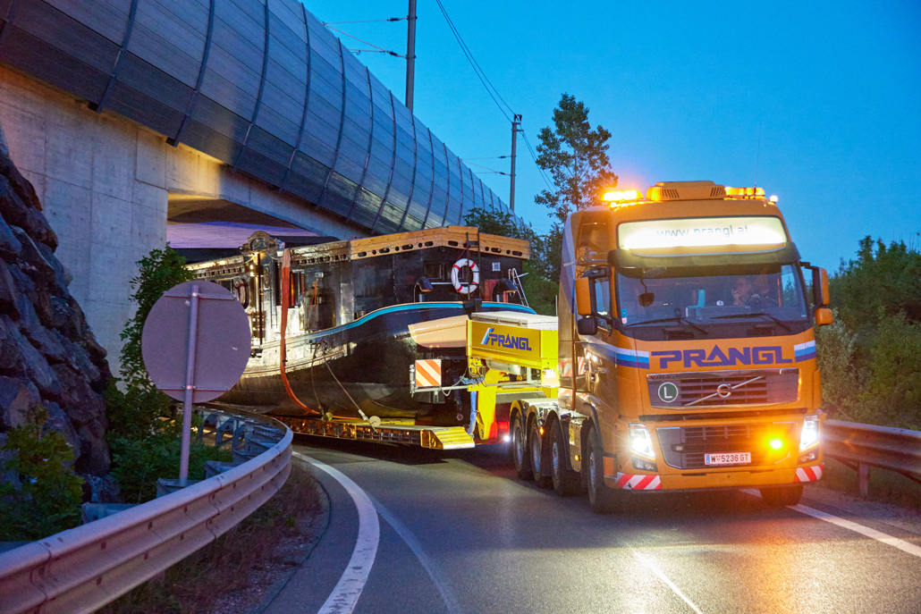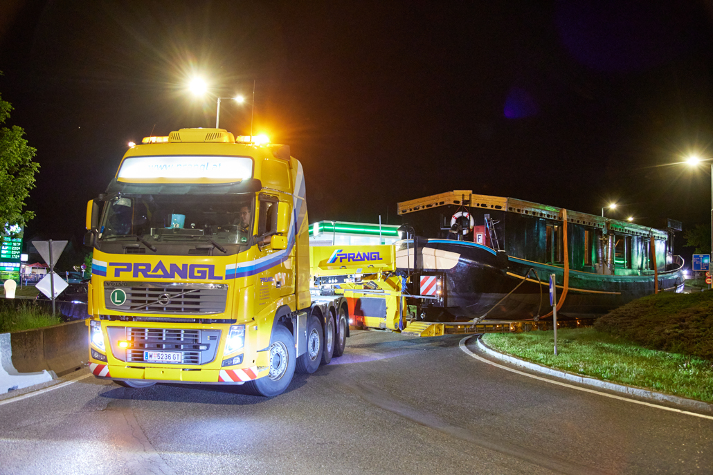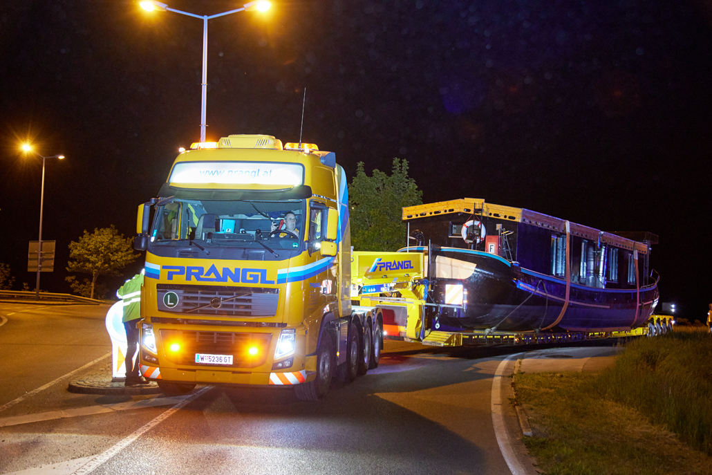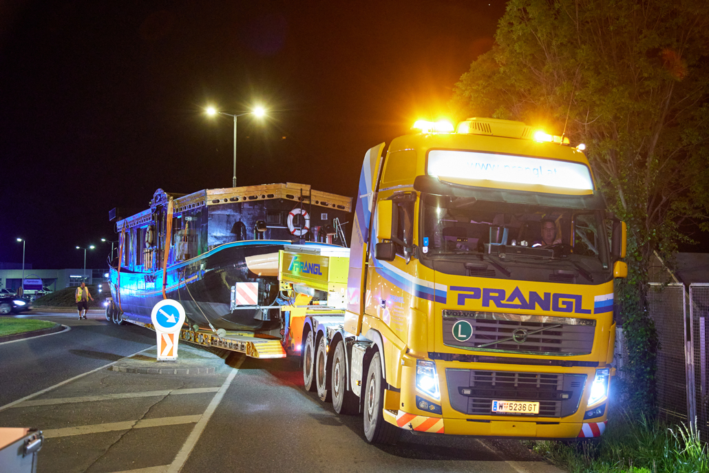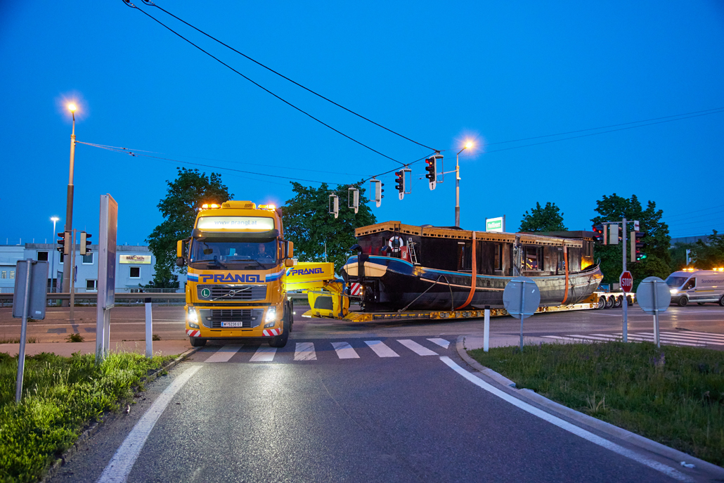A houseboat that once travelled the canals of Amsterdam in the Netherlands found itself a new owner in Austria. This new owner spent years renovating it in a boatyard in Wilhelmsburg, adapting it to his requirements. And once the work was complete, it was to be launched in the Danube. Prangl was entrusted with this unusual heavy duty transportation.