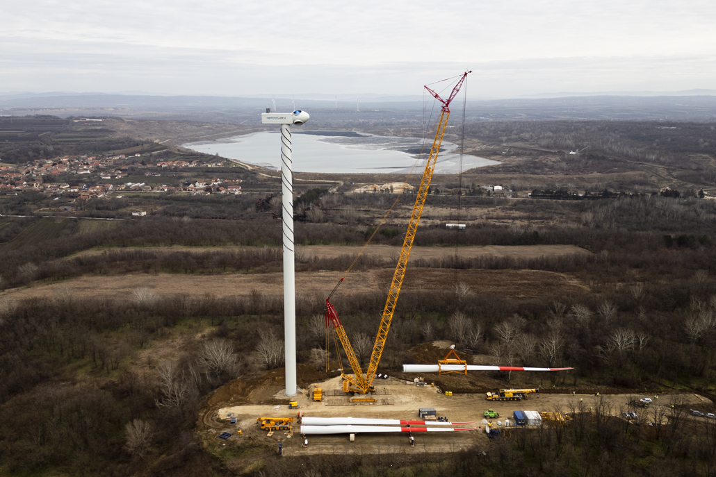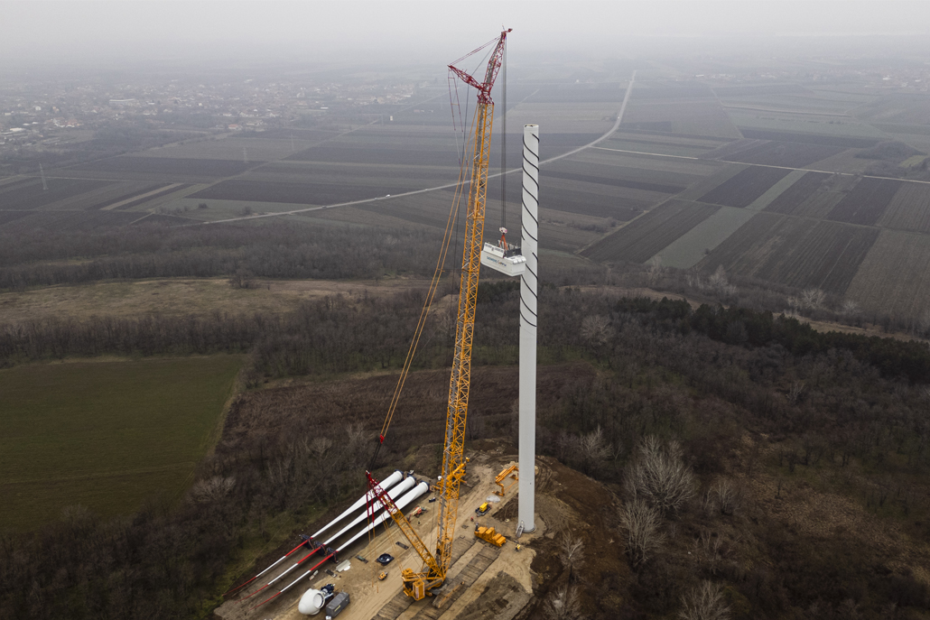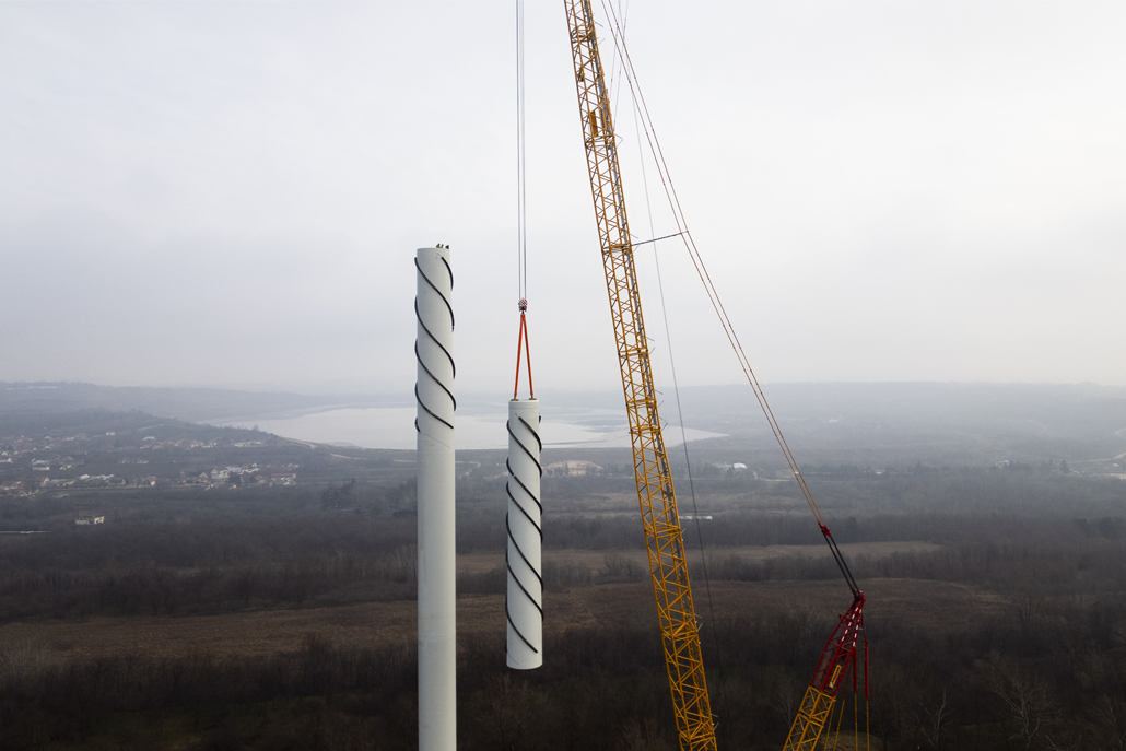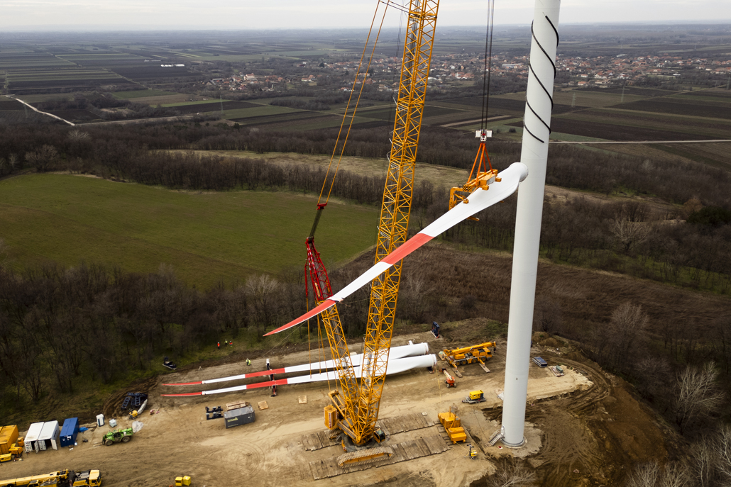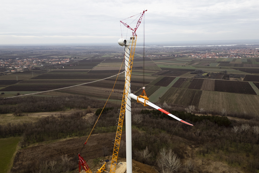 The nacelle weighing 91.8 and with dimensions of 12.5 x 4.2 x 4.2 metres was next, followed by the individual rotor blades with a length of almost 65 metres each and a weight of 32.5 tonnes each. After completing each individual turbine, the main crane was moved from site to site using an additional 90-tonne telescopic crane. Both the people and the machines performed their work outstandingly. Once the Kostolac wind farm is open, these turbines will be the most powerful in the country.