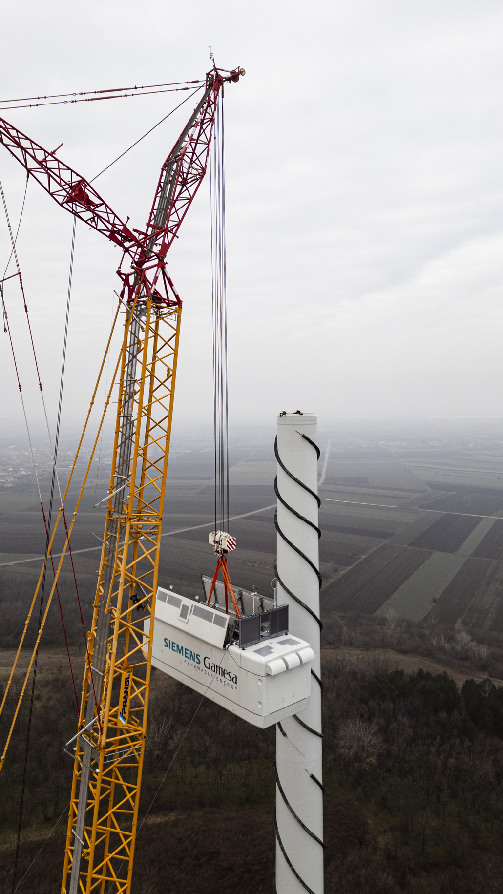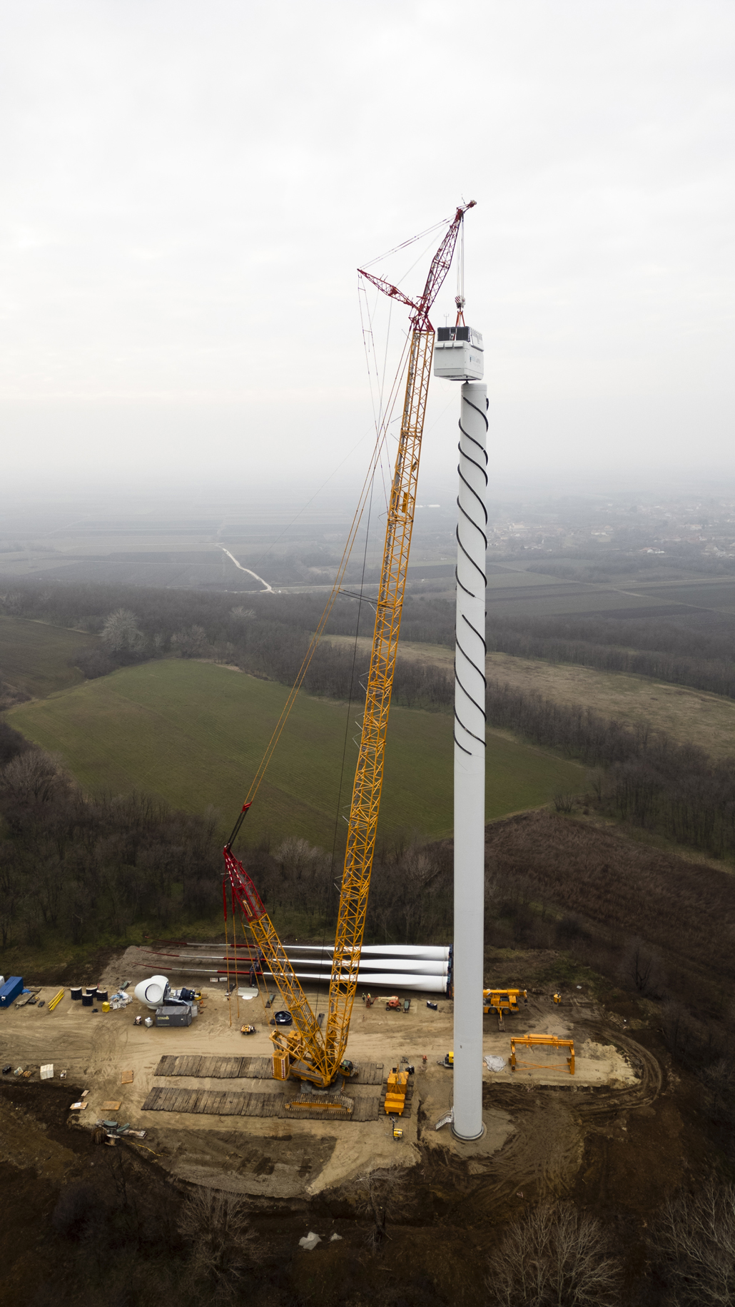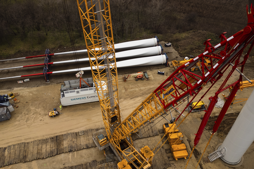 The nacelle weighing 91.8 and with dimensions of 12.5 x 4.2 x 4.2 metres was next, followed by the individual rotor blades with a length of almost 65 metres each and a weight of 32.5 tonnes each. After completing each individual turbine, the main crane was moved from site to site using an additional 90-tonne telescopic crane. Both the people and the machines performed their work outstandingly. Once the Kostolac wind farm is open, these turbines will be the most powerful in the country.