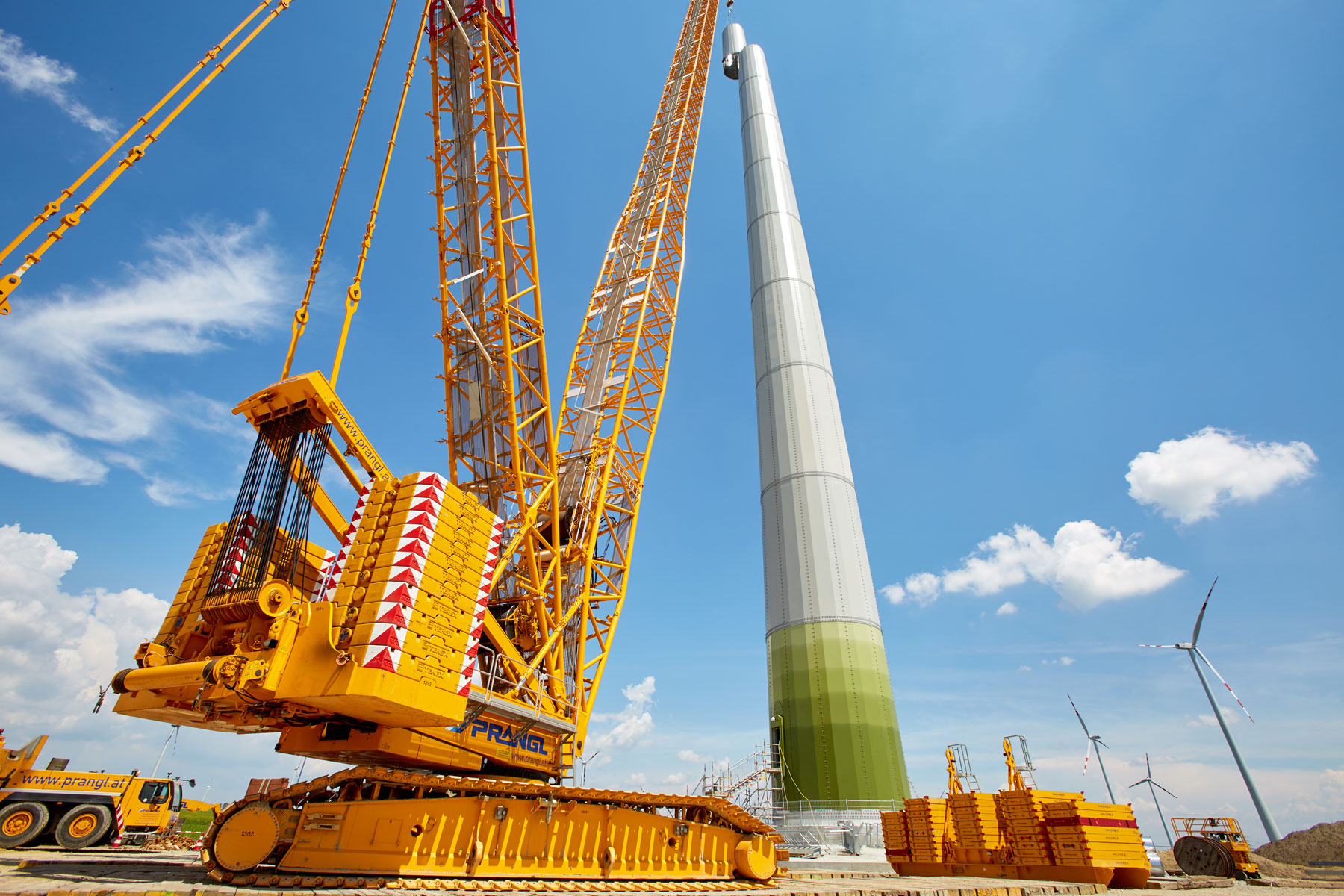 The first wind energy plant with a modular steel tower in the world was erected in Austria. The individual tower segments are made of chamfered steel elements that are screwed together on the building site. The next assembly step is to then place them on top of each other and also screw them together. The Prangl experts are always the right people for this type of special assignment.