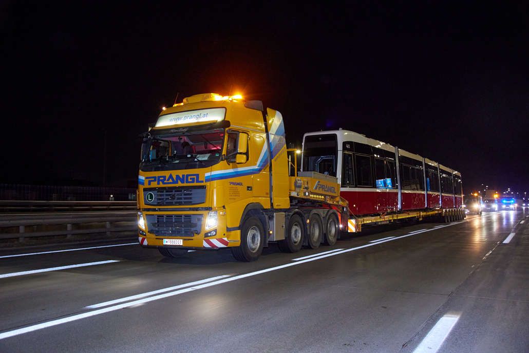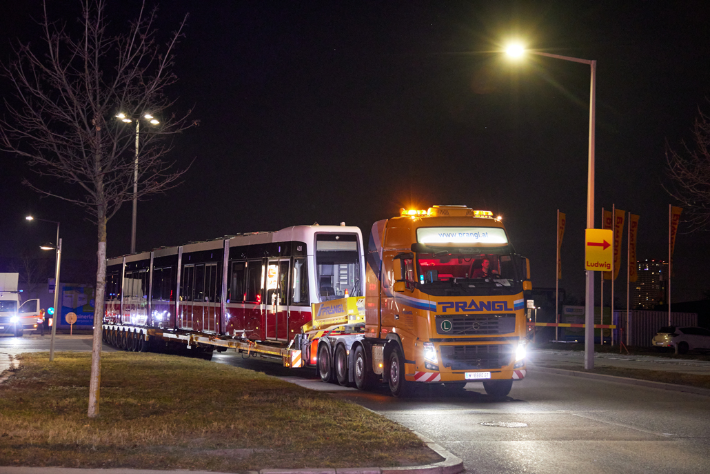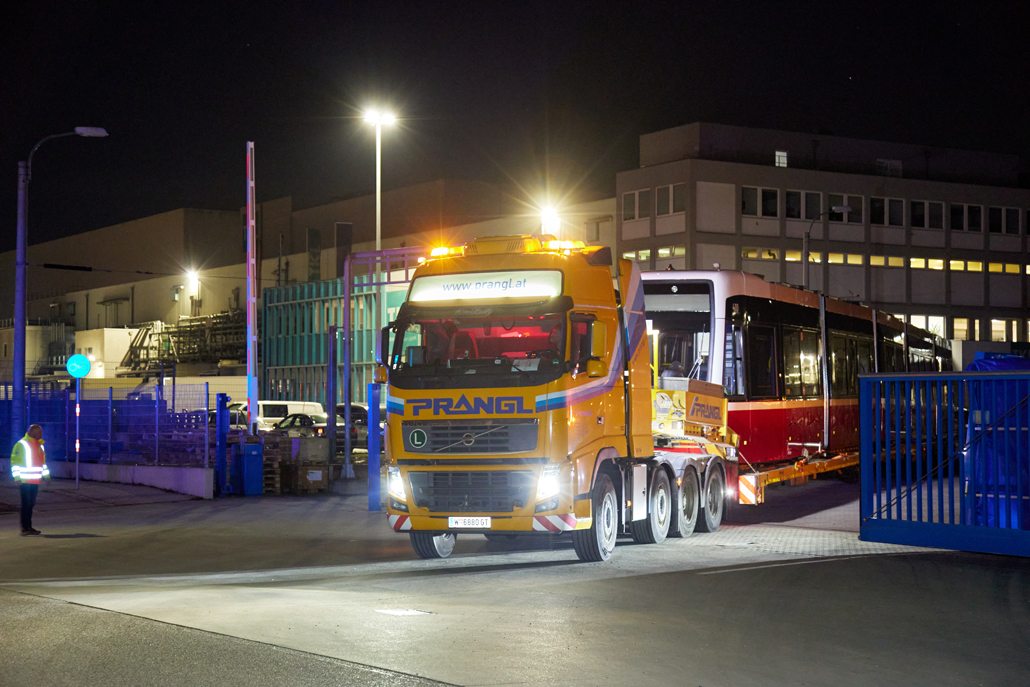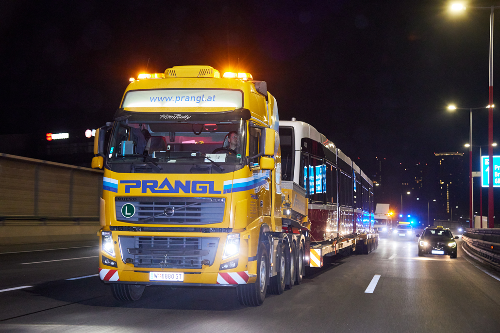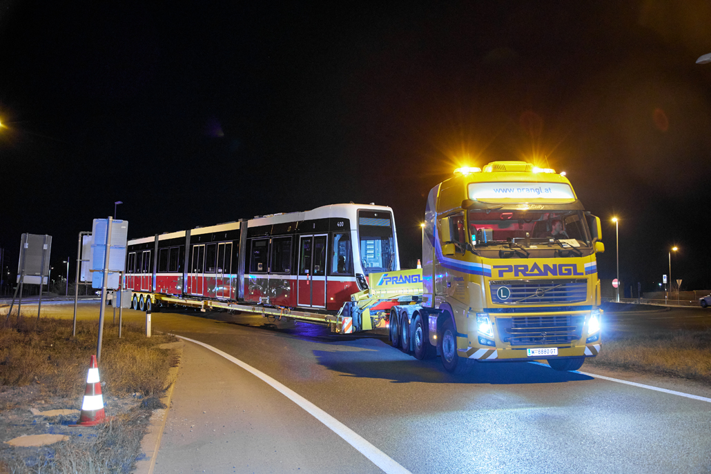 The new barrier-free "Flexity" trams have been operating in Vienna for some time now and offer passengers greater comfort. And it was now time to celebrate the 100th tram leaving the factory in the 22nd district of Vienna for delivery to Wiener Linien. Prangl transported the landmark tram from the north to the south of the city – to the central workshop in the city's 11th district.
