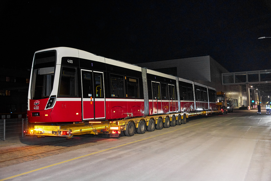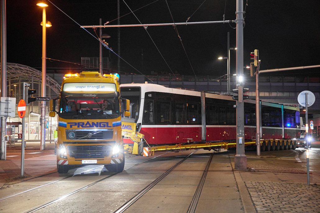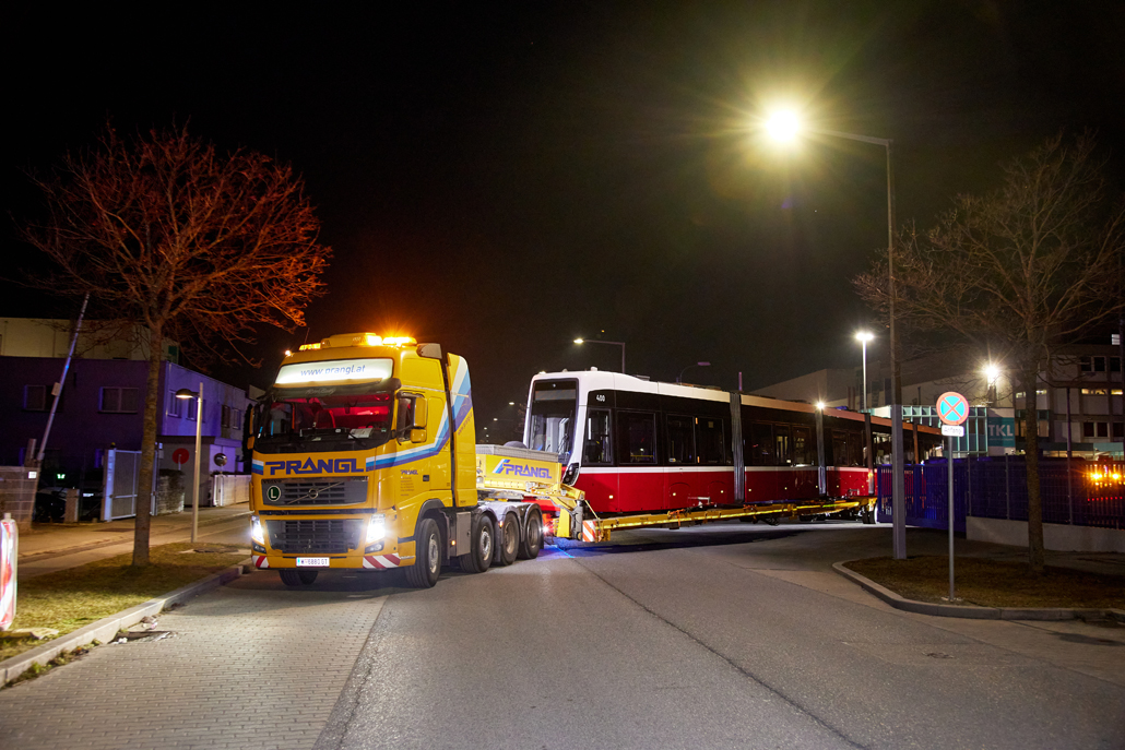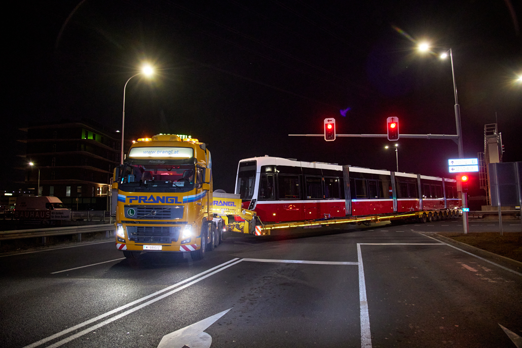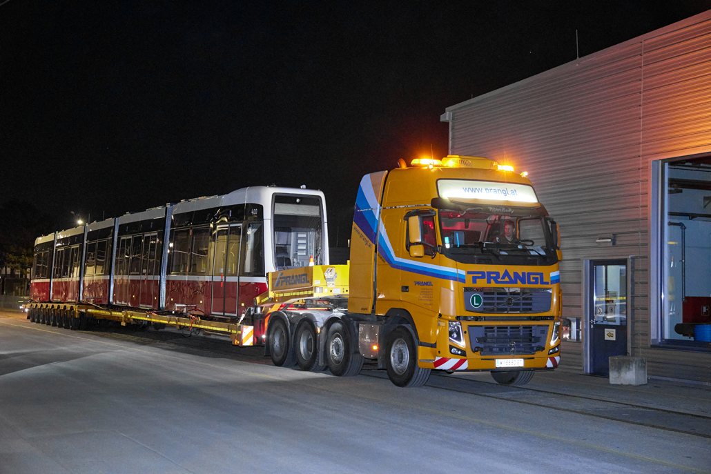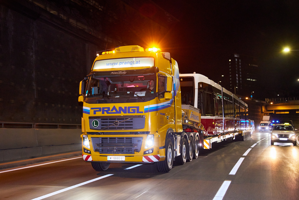 The new barrier-free "Flexity" trams have been operating in Vienna for some time now and offer passengers greater comfort. And it was now time to celebrate the 100th tram leaving the factory in the 22nd district of Vienna for delivery to Wiener Linien. Prangl transported the landmark tram from the north to the south of the city – to the central workshop in the city's 11th district.