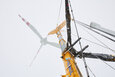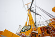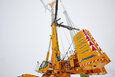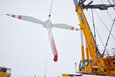 Well prepared, the Prangl team set to work. The complete dismantling of each of the four wind turbines began with the entire rotor, which was lowered to the ground in one piece together with the hub. Thanks to a second attachment to the hub, the 43-tonne rotor star could be rotated into the horizontal without any problems and then set down. This was followed by the 51-tonne generator and the 18-tonne nacelle – all at a height of 85 metres. The tower sections, weighing 2 x 44 tonnes and 2 x 60 tonnes, were dismantled from the top down with a lifting height of 21 metres per section.