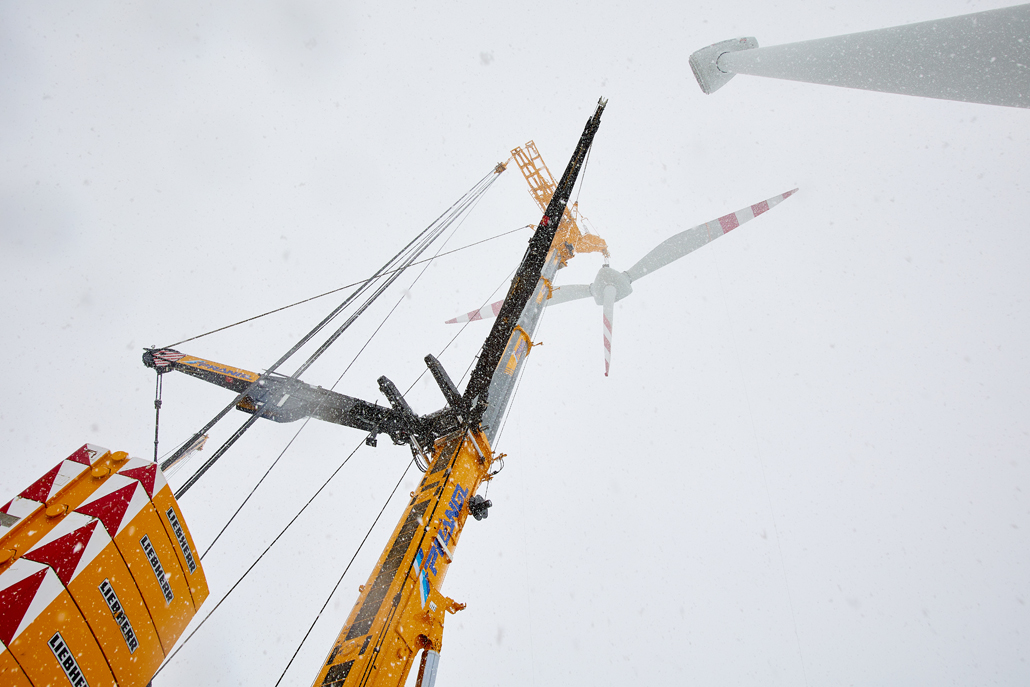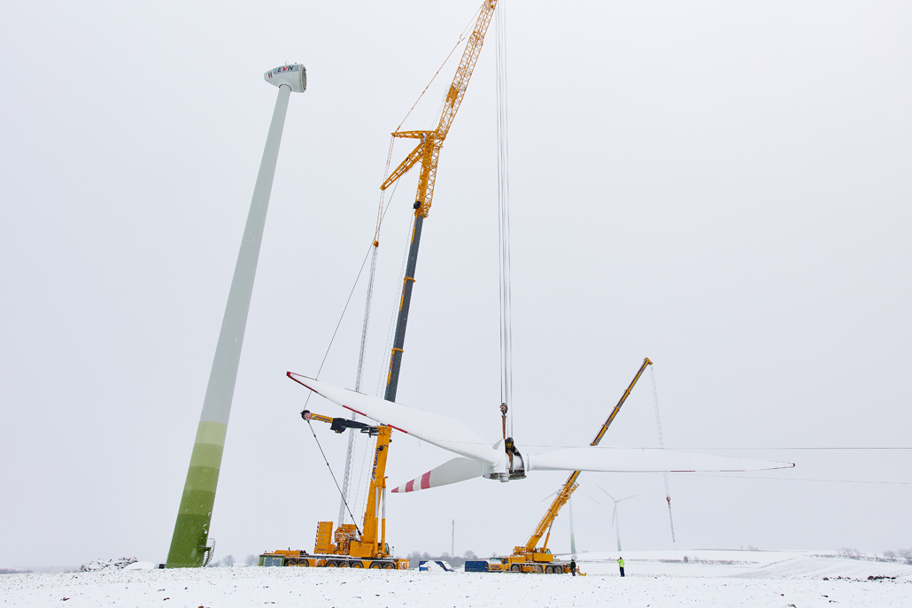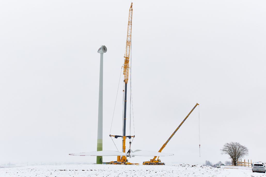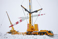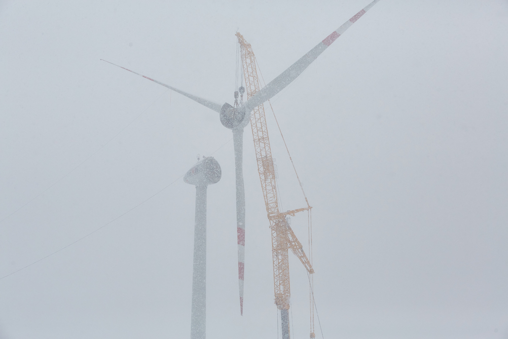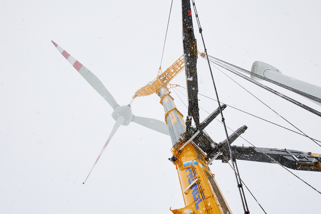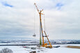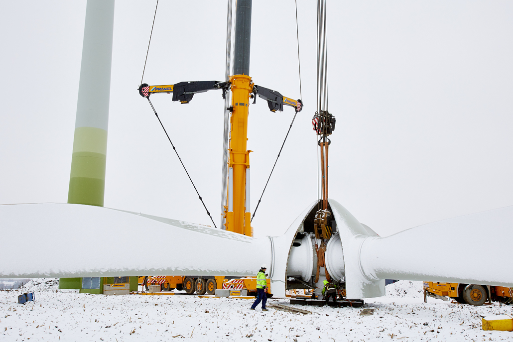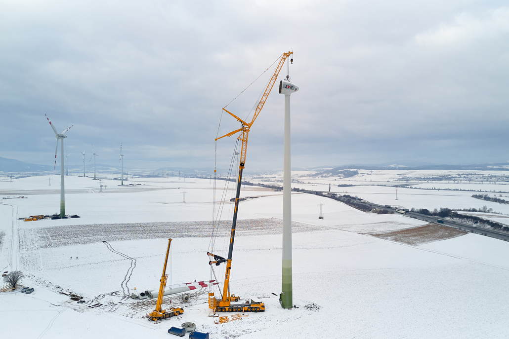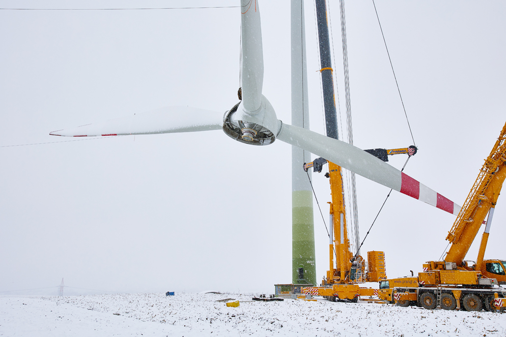 It is clear that weather conditions at this time of year are not always suitable for work of this kind. At first glance, there appeared to be sufficient space around the wind turbines. However, the solid ground required for heavy machinery was limited in terms of where the machines could be positioned. Yet the yellow team braved the lack of space, the cold and snow flurries – only strong winds could stop them from working. Completion of the wind farm is scheduled for May 2027.