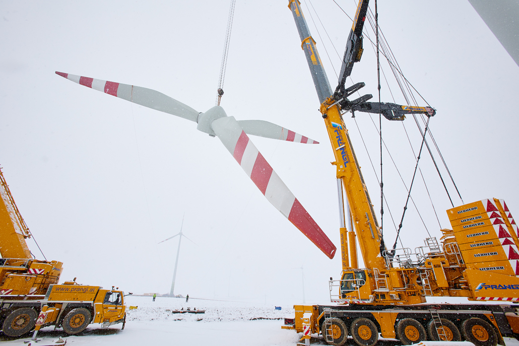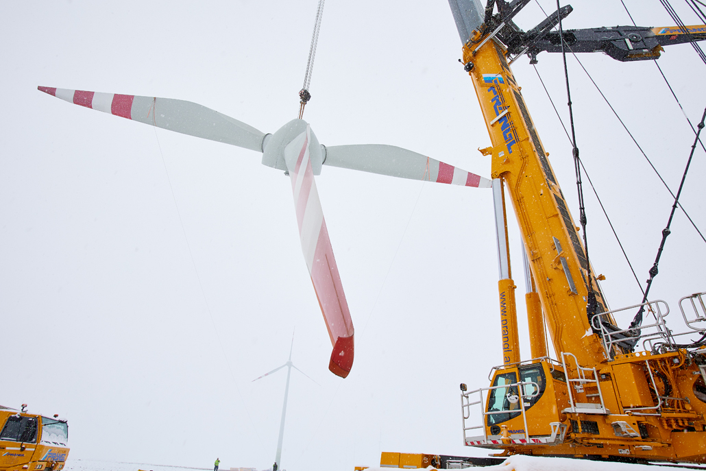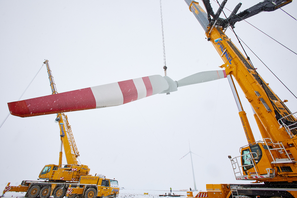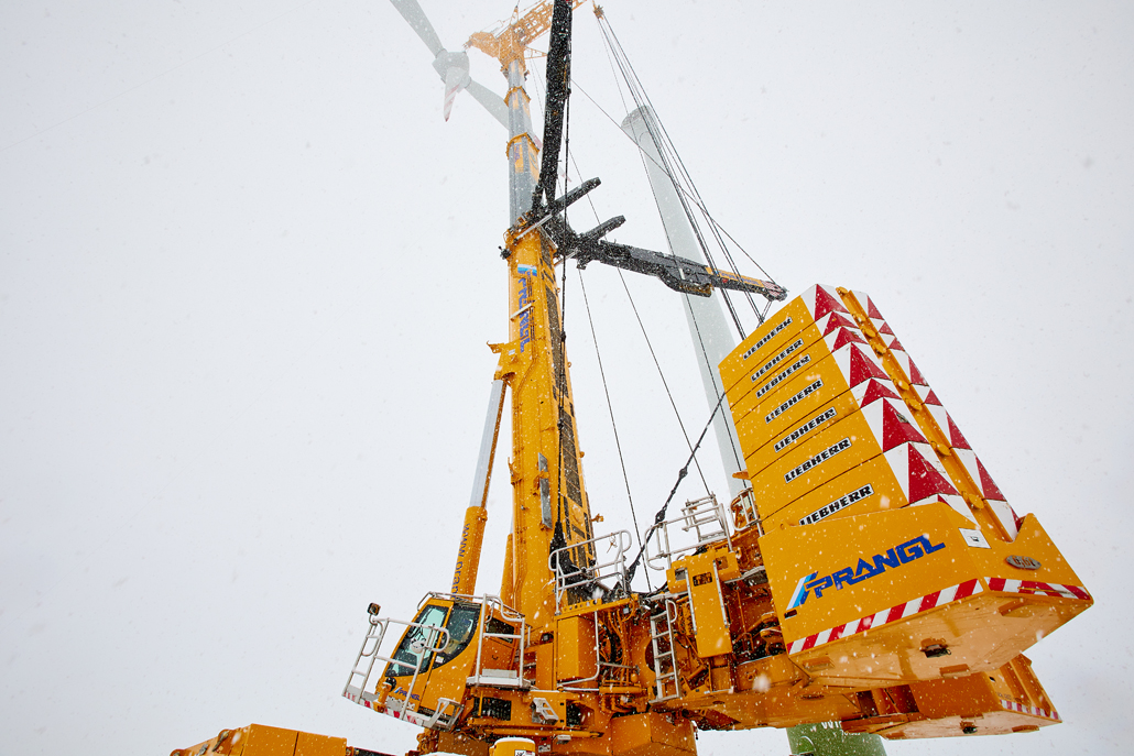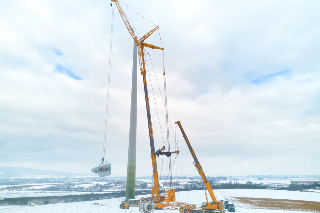 The Groß Sierning wind farm – located right next to the Loosdorf exit on the A1 motorway – has been generating 16.2 megawatts of electricity for over 20 years with its nine wind turbines, supplying 8,000 households. To increase security of supply, it was decided to generate even more power by renewing the turbines. Prangl was entrusted with the dismantling work for the first four wind turbines – in what were at times very adverse weather conditions.