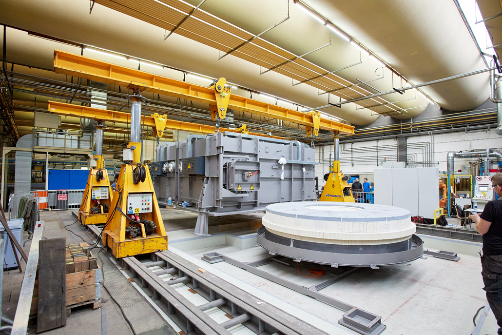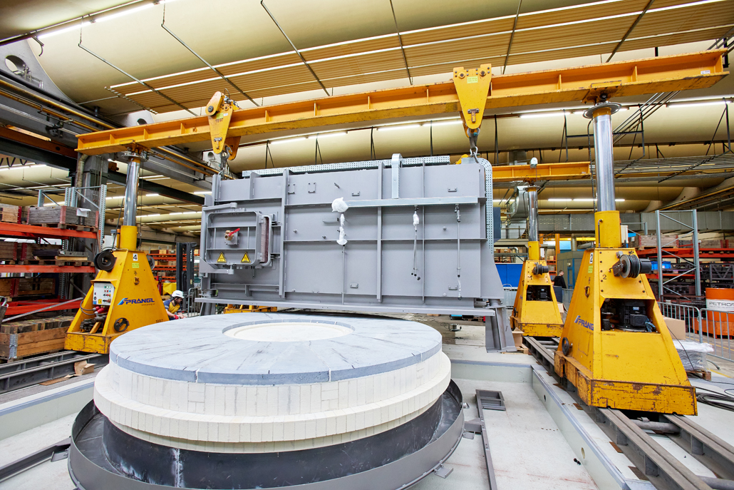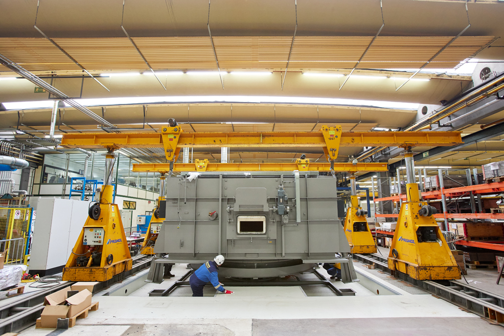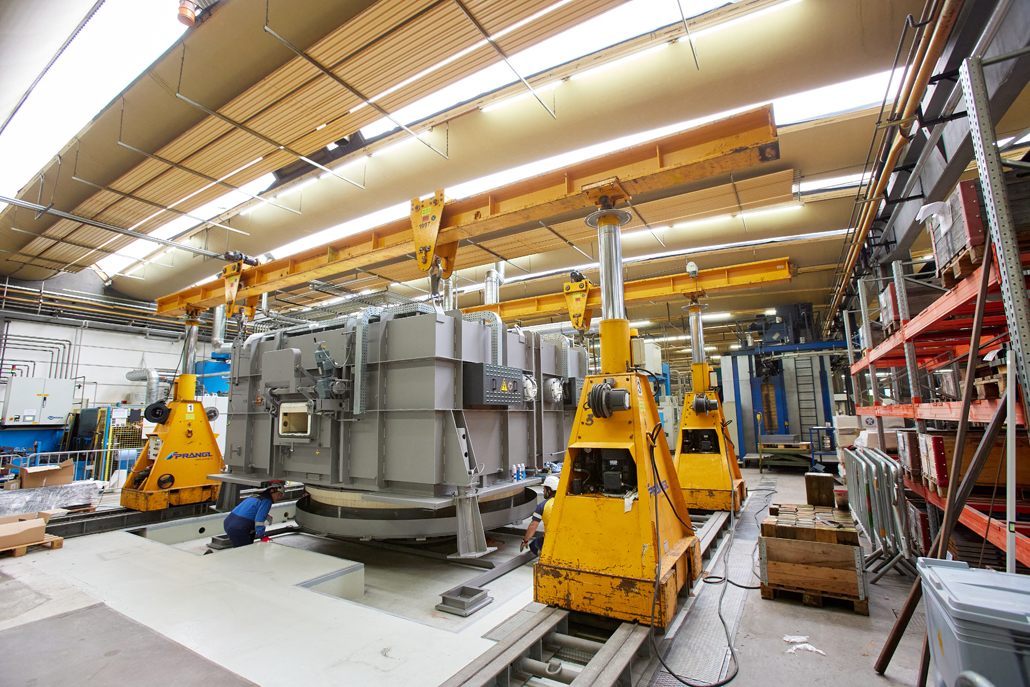 Due to the lack of space, a mobile crane could not be used for assembly and transport within the hall. A hydraulic gantry was therefore the perfect device for moving the rotary kiln into place. Finally, the hydraulic gantries can be combined with different dimensions and lifting capacities to suit the current situation. With multiple telescopic hydraulic jacks, a rail system, a carrier and various anchorage points, loads can be positioned with precision.