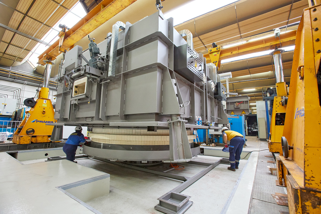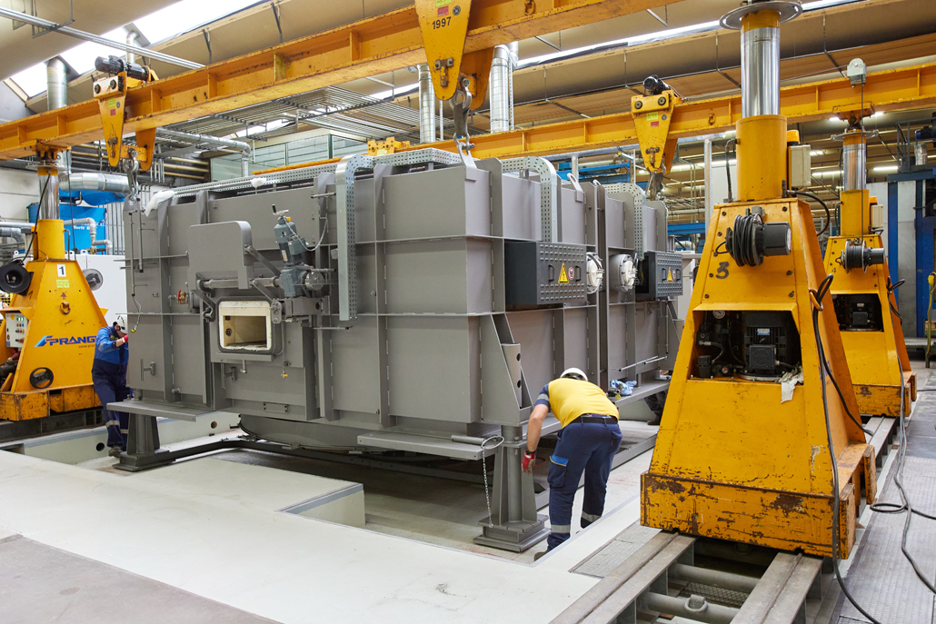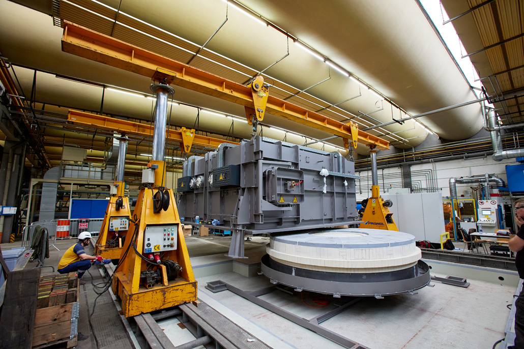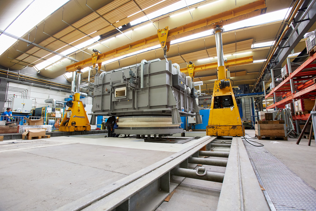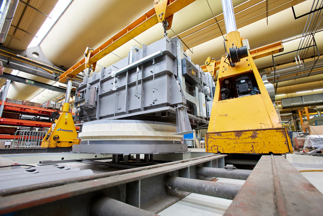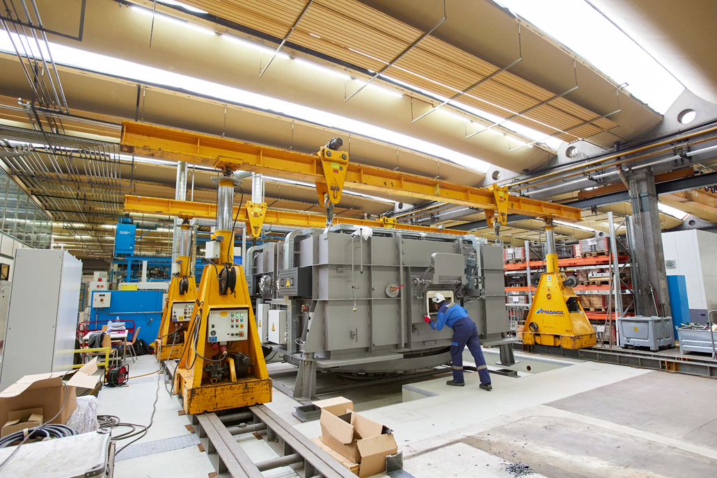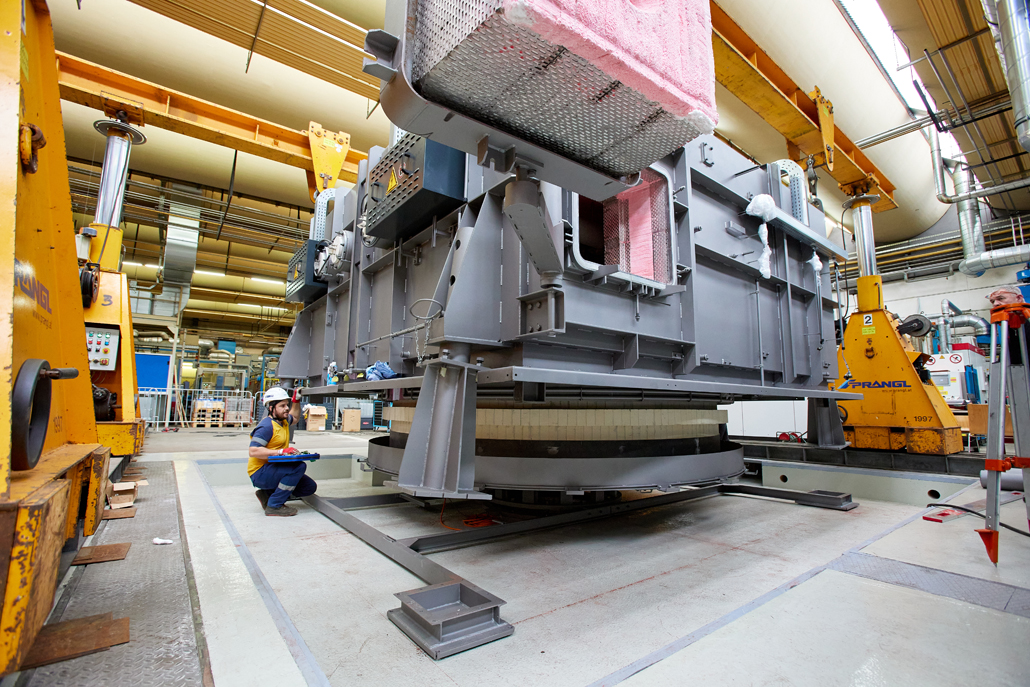 The delicate task for the Prangl team: A 4.4 metre high rotary kiln with a diameter of 4.0 metres was to be brought into a hall and set down there, where the 10 tonne machine was be used in the future. The challenge in this case was the fact that it was a hall equipped with production facilities and the available space was extremely limited, so ongoing operation was not to be disturbed under any circumstances.