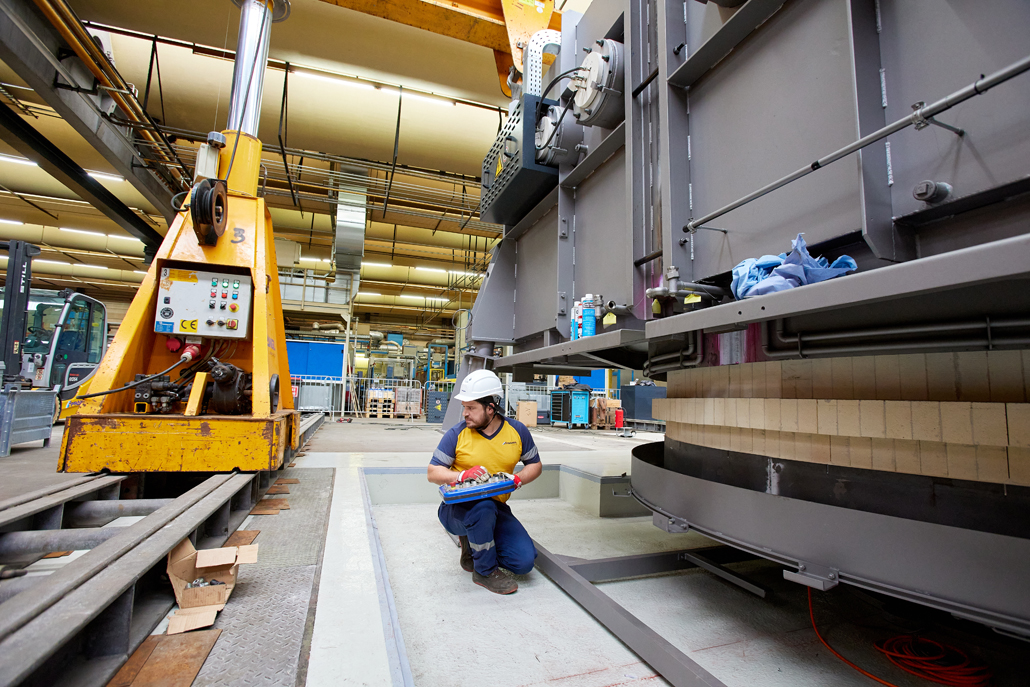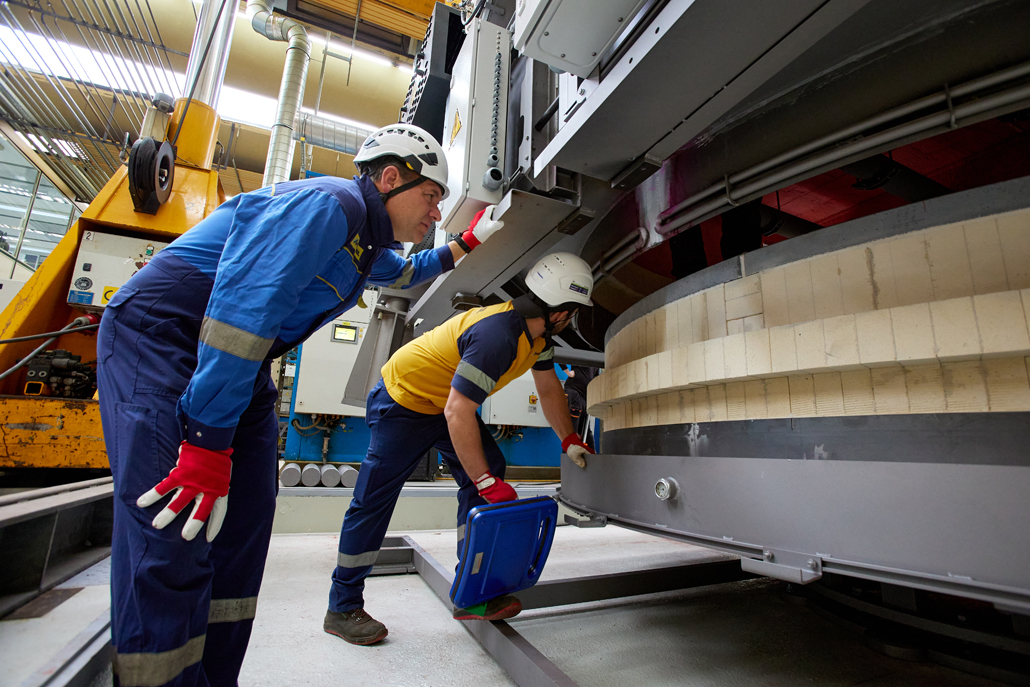 Due to the limited space available in the production hall, disassembly work had to be carried out in advance. Only then could the actual work begin. The first work step was carried out by a 70 tonne telescopic crane, which unloaded the delivered kiln parts from the low-loader. A forklift truck with a load capacity of 3.5 tonnes and a maximum lifting height of 4.5 metres and heavy-duty rollers were then used. Together, they had the task of bringing the individual parts into the hall and placing them at a pre-defined assembly point.