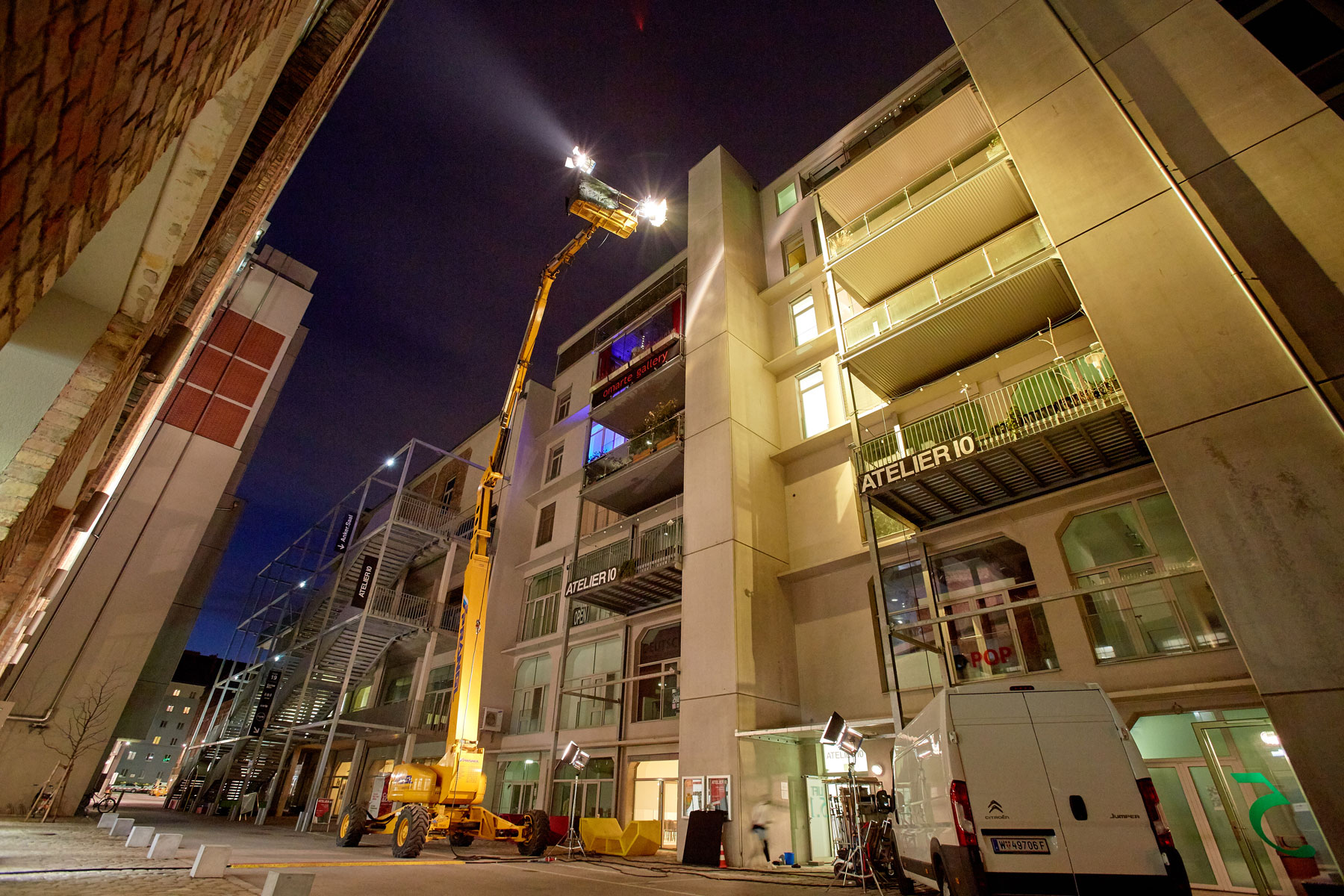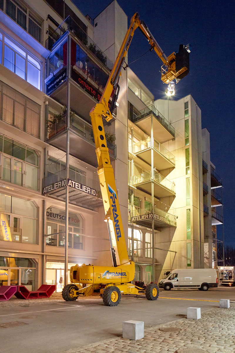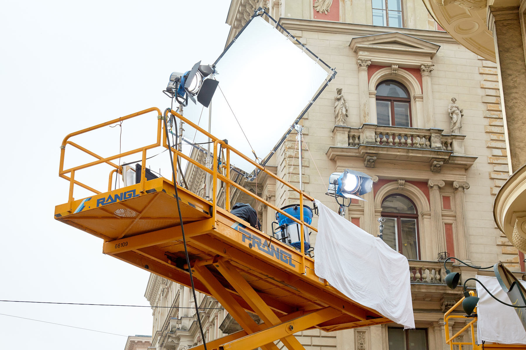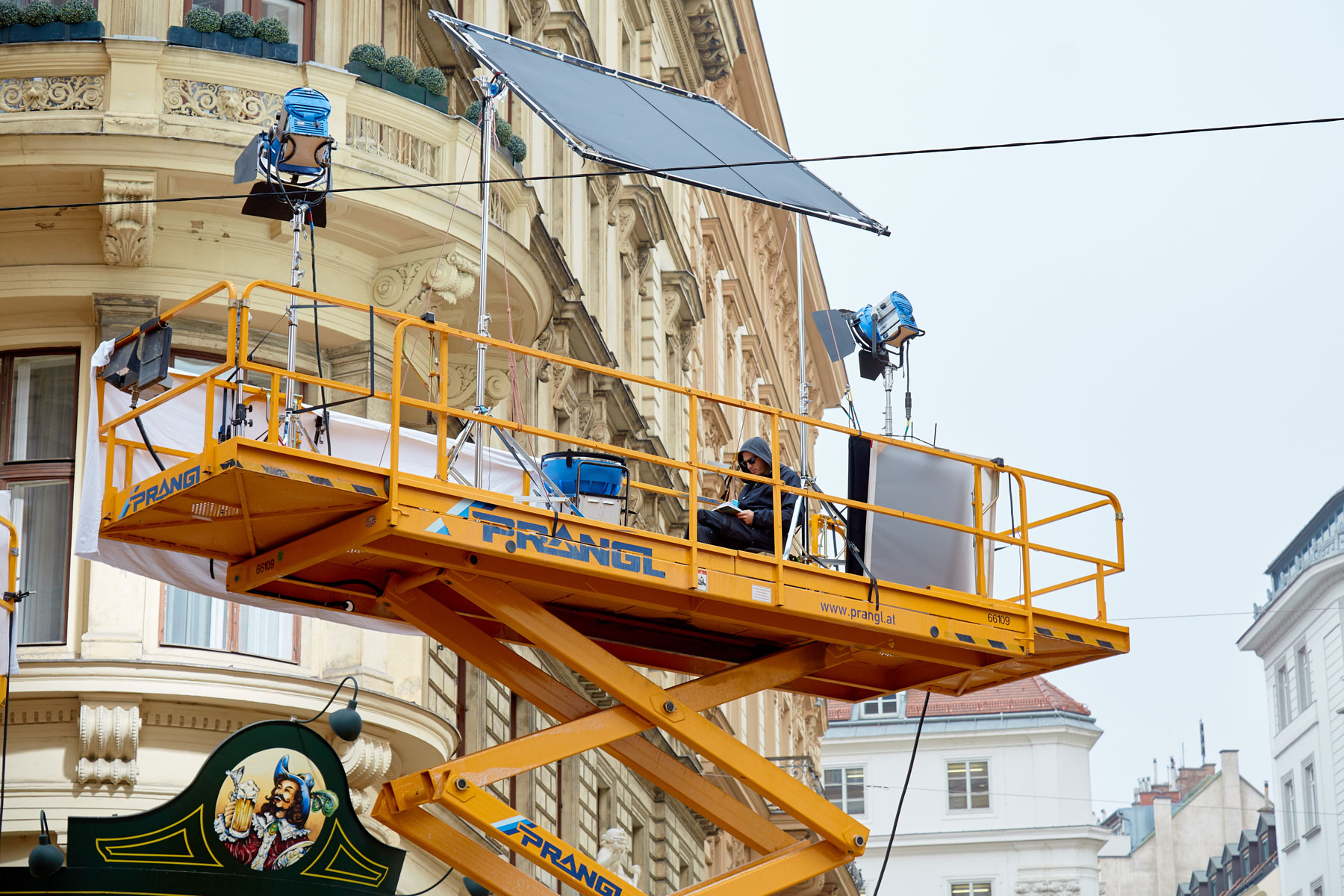 The Tatort episode with the working title "Die Faust" ("The fist") will be broadcast on the Austrian TV channel ORF in about a year. The perfect lighting was ensured by different Prangl aerial work platforms among other things. Our diverse fleet was used for eight different scenes: 5x 15-metre scissor lifts, 2x 10-metre scissor lifts and 1x 43-metre articulating boom lift.