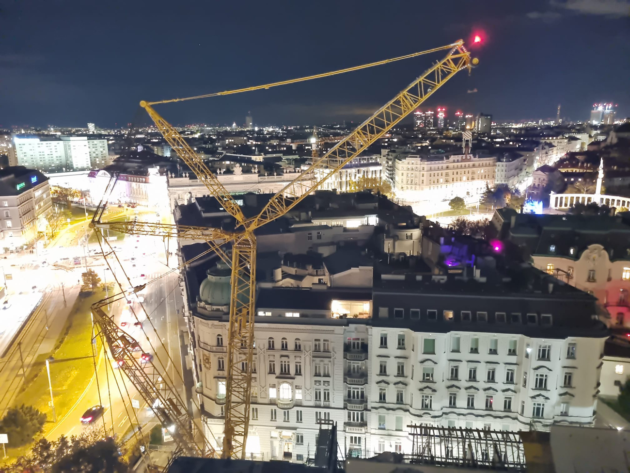 In order to reduce the risk of tipping, the ground clearance of the low-loader was reduced to around one centimetre. Every steering movement was critical due to the high centre of gravity. A little additional tension was provided by one or two of the street lights. The tower passed by the lights with just a few centimetres of clearance. Every obstacle was superbly overcome thanks to the experience and teamwork of the whole Prangl team.