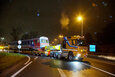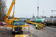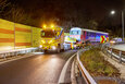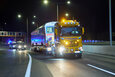 At 10 pm, the heavy duty transportation with a total length of 36.50 metres, a total width of 3.80 metres, a height of 4.60 metres and a total weight of 129.10 tons, finally set off on its way. The first hurdle was the slip road onto the Mühlkreis motorway right next to the city harbour, which had to be closed at short notice for this project. This was because the convoy not only needed the entire width of the motorway at the access point – after travelling a short distance it came to a halt in front of a bridge, where the 9-axle vehicle was lowered centimetre by centimetre before moving beneath the bridge at walking pace. The exit after the Danube bridge also demanded the HGV driver's full concentration, as the bend had to be negotiated very slowly.