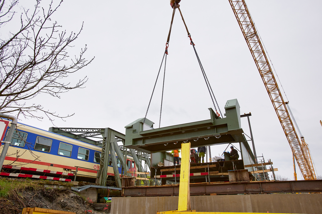 An ÖBB railway bridge crosses the Traisen river close to the Kreisbach/Wilhelmsburg railway station. Roughly 125 years after its construction, it was time to replace the original structure. The new truss structure was prefabricated and delivered in parts by a specialist bridge construction company. Prangl was commissioned to play a leading role in the bridge building project.