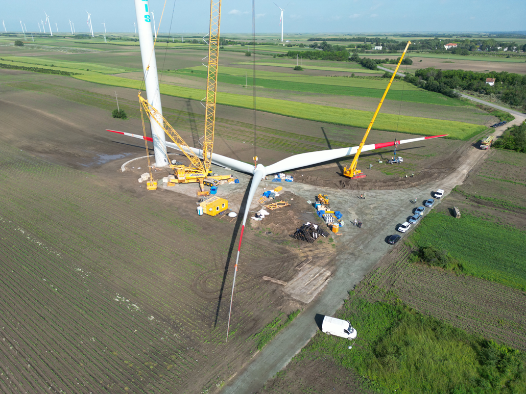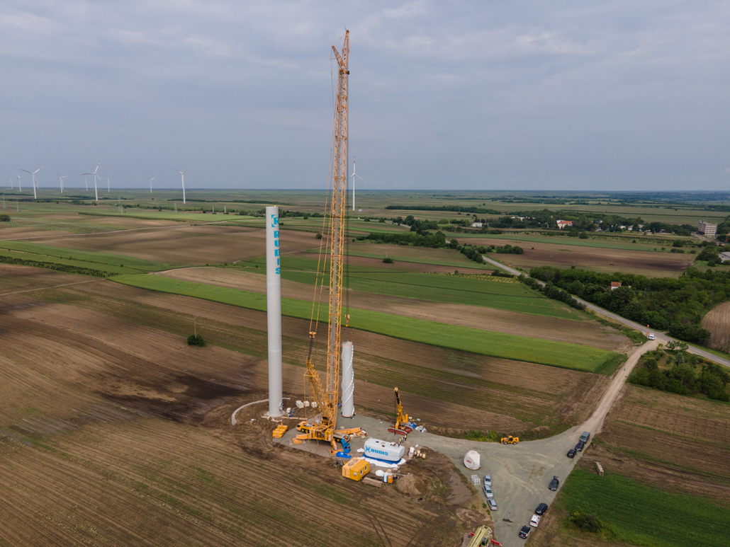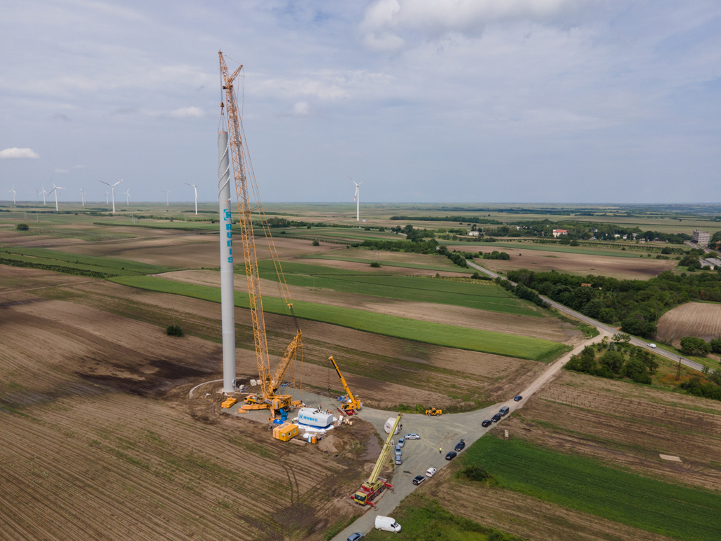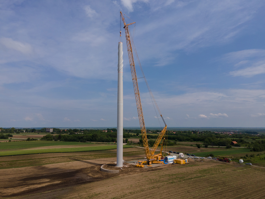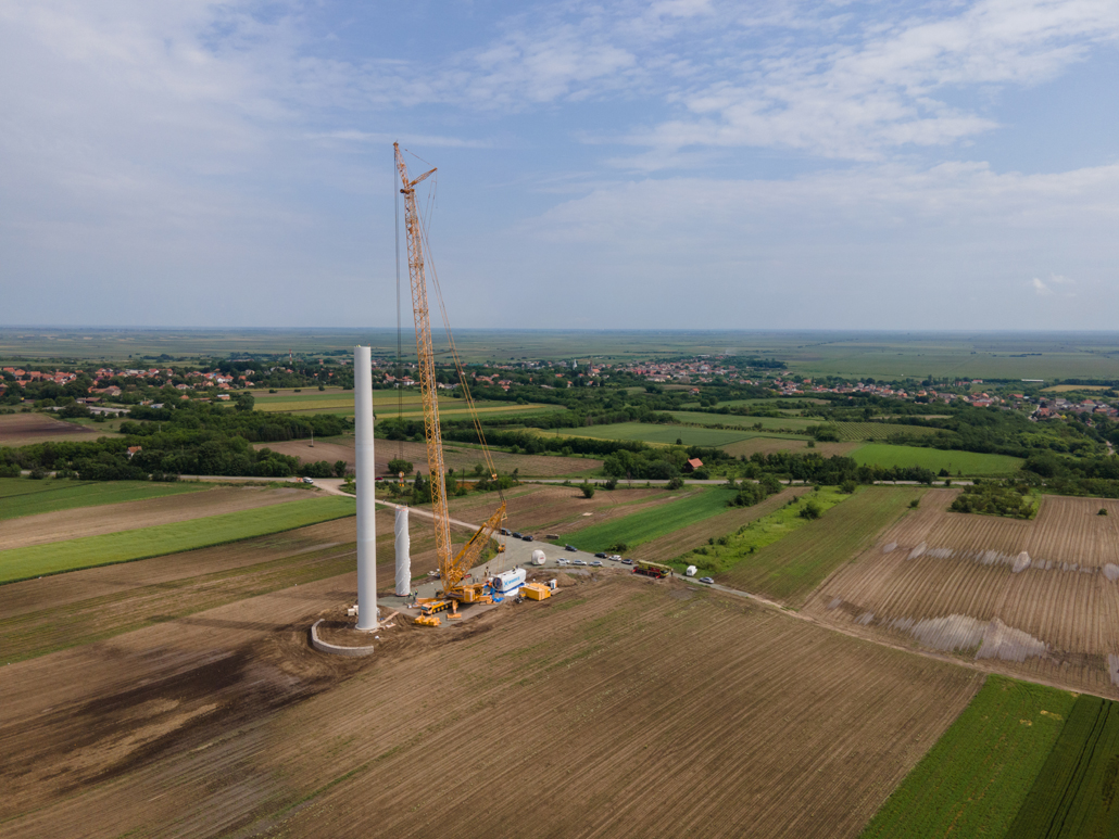 Electricity generation from wind power was still in its infancy in Serbia not long ago. These days, however, more and more people are turning to this sustainable energy source there as well. An increasing number of wind power plants are being planned and implemented – such as the Alibunar wind farm in the province of Vojvodina. Prangl Serbia was commissioned to erect the wind turbines. These are the first wind turbines in Serbia to have been supplied by a Chinese manufacturer. The first wind turbines with outputs of 3.3 megawatts were installed in May and June 2023.