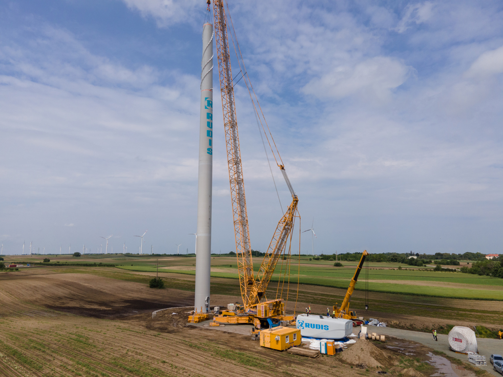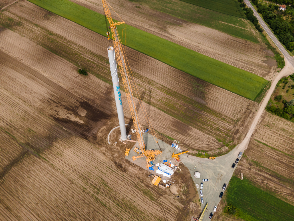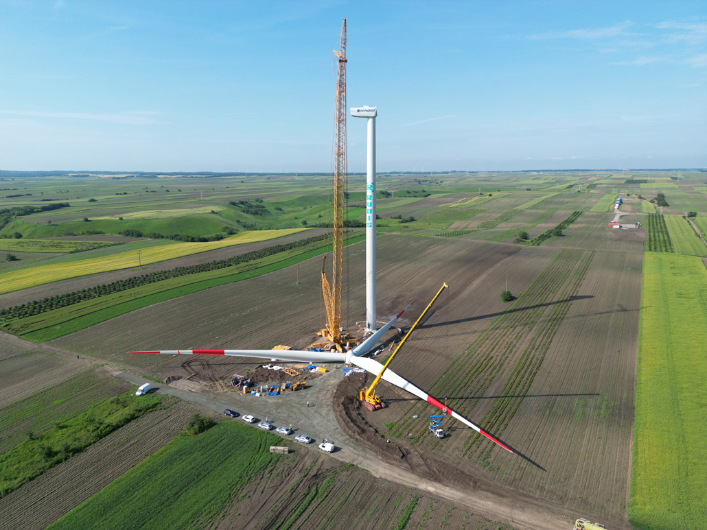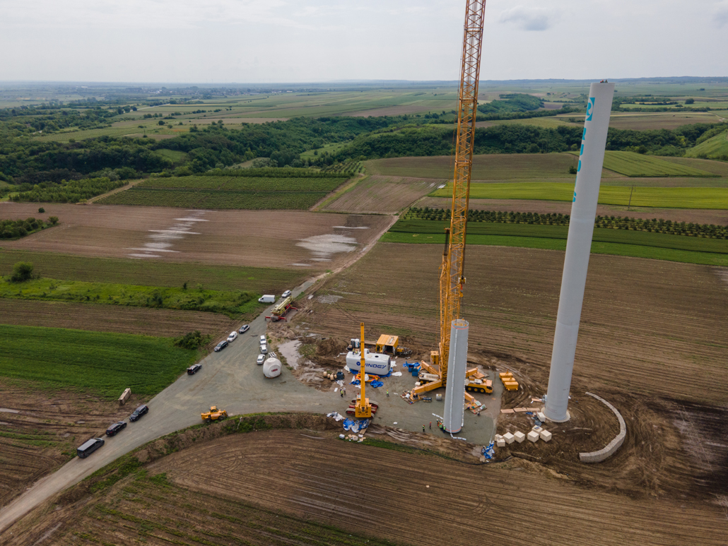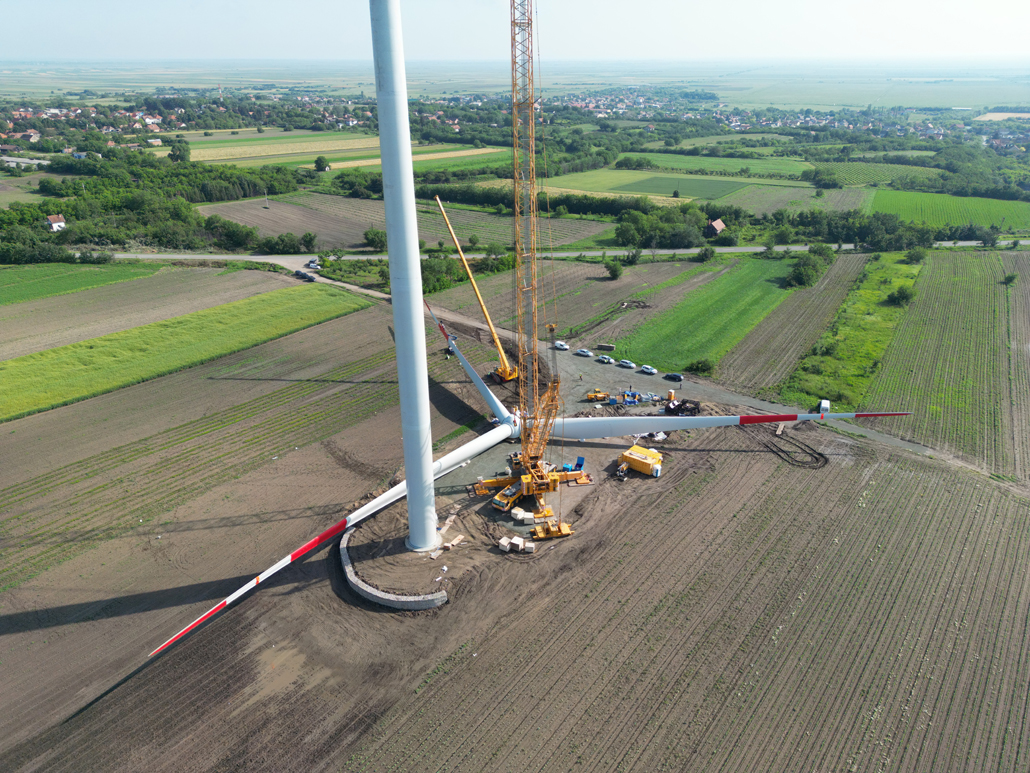 Electricity generation from wind power was still in its infancy in Serbia not long ago. These days, however, more and more people are turning to this sustainable energy source there as well. An increasing number of wind power plants are being planned and implemented – such as the Alibunar wind farm in the province of Vojvodina. Prangl Serbia was commissioned to erect the wind turbines. These are the first wind turbines in Serbia to have been supplied by a Chinese manufacturer. The first wind turbines with outputs of 3.3 megawatts were installed in May and June 2023.