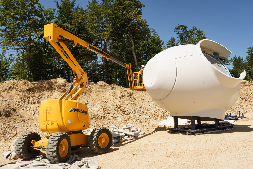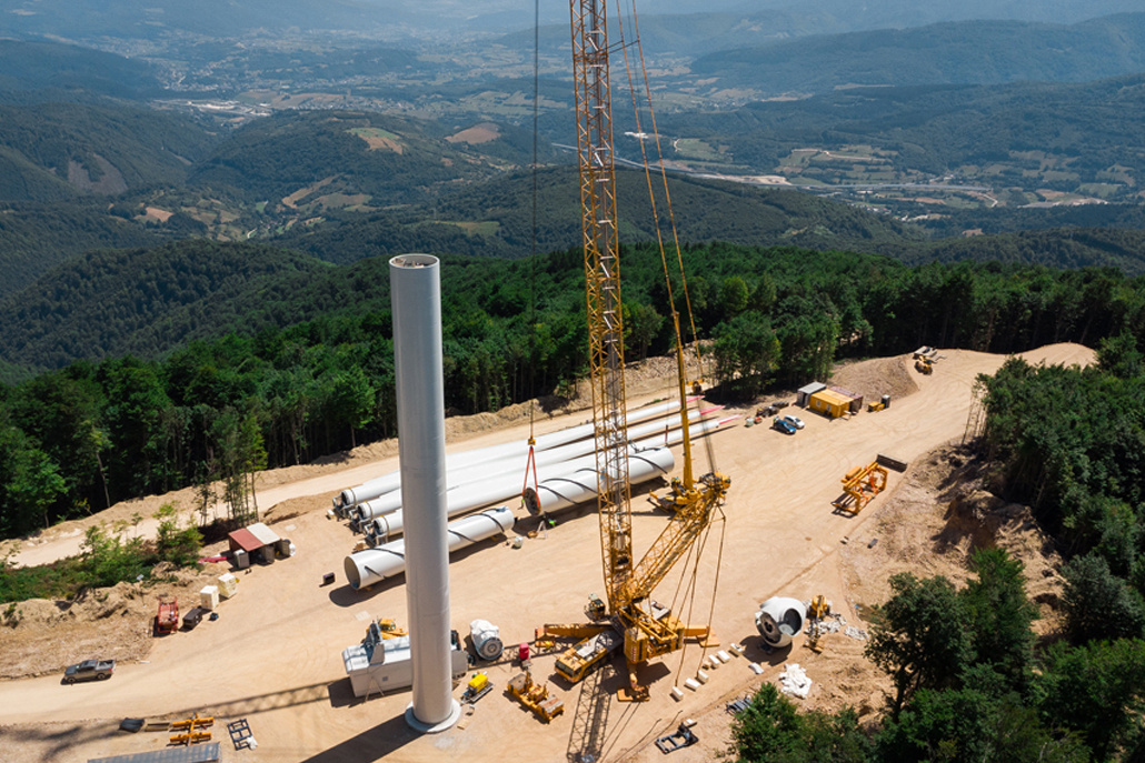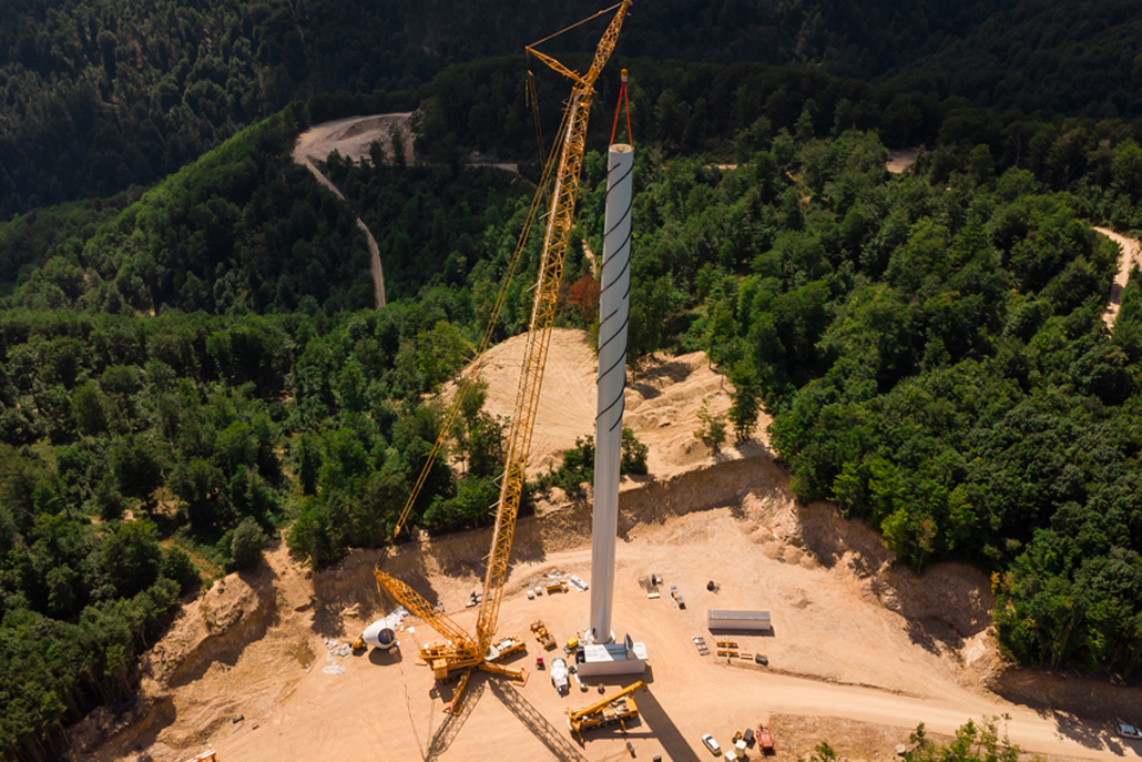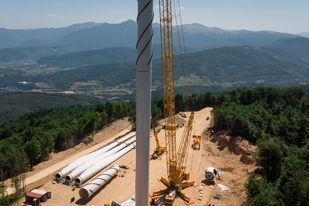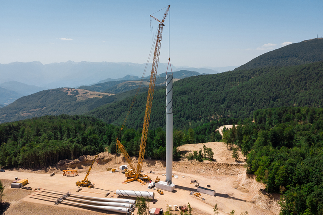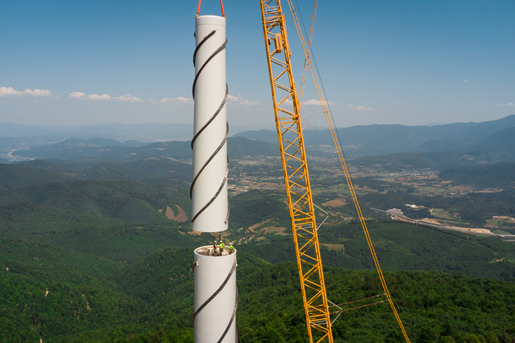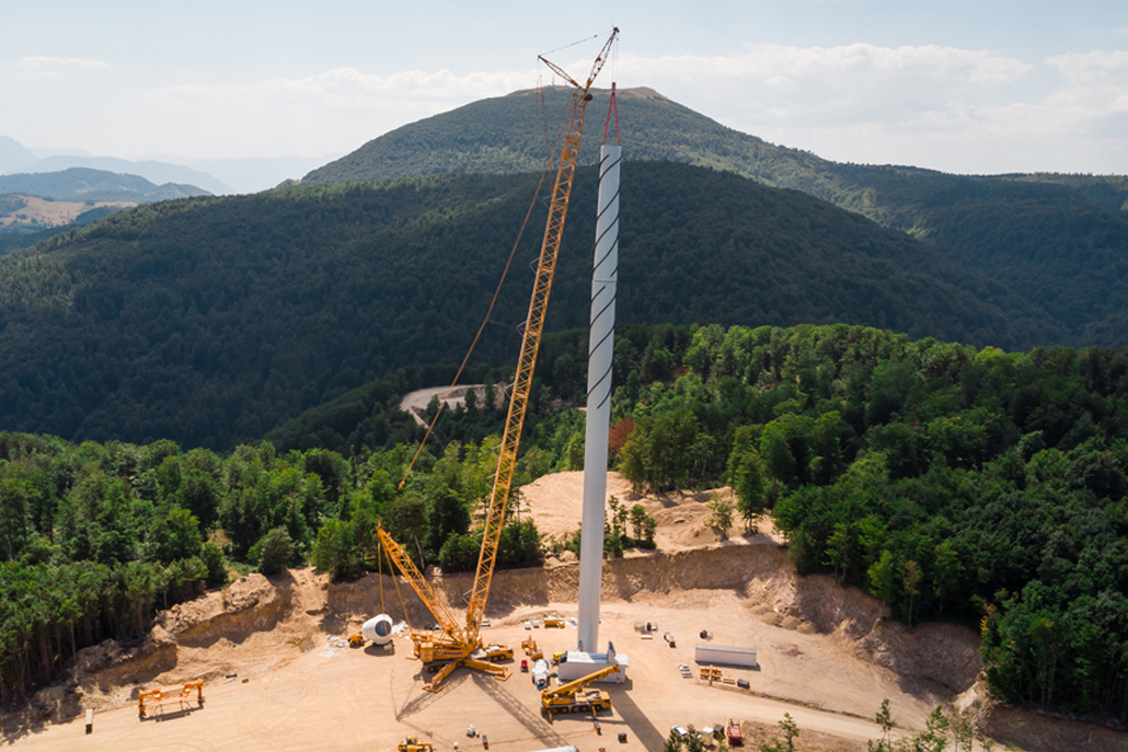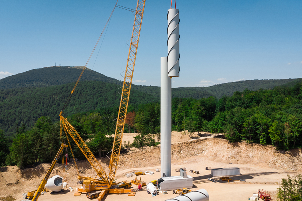 Next came the lifting of the nacelle, drive train and hub. They were lifted with utmost precision, one after the other, by the lattice boom crane. After these delicate installations at dizzying heights, all that was missing were the rotor blades. These were carefully lifted one by one by the yellow main crane and a telescopic crane and positioned with millimetre precision. One wind turbine after another was completed. With the support of Prangl, the new Ivan Sedlo wind farm is now set to produce enough electricity to supply more than 26,000 households from 2025 with a total output of 25 megawatts.