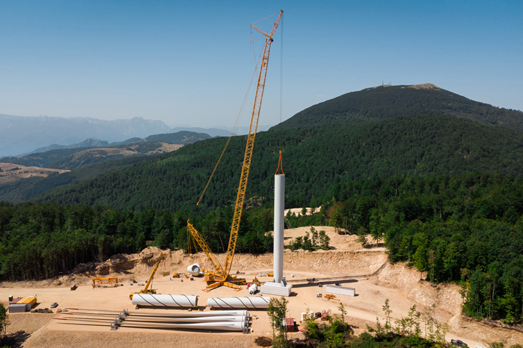 Prangl was already responsible for unloading and transporting five wind turbines 700 kilometres from the port of Zadar in Croatia to Ivan Sedlo in Bosnia and Herzegovina. However, this was by no means the end of this major order. The specialist team was also to take care of the pre-installation and main assembly of the systems.