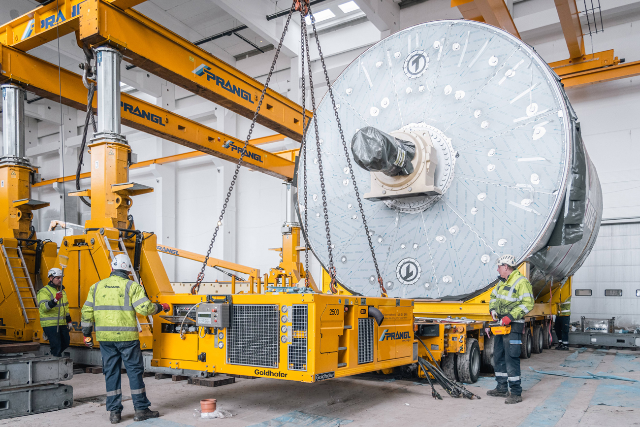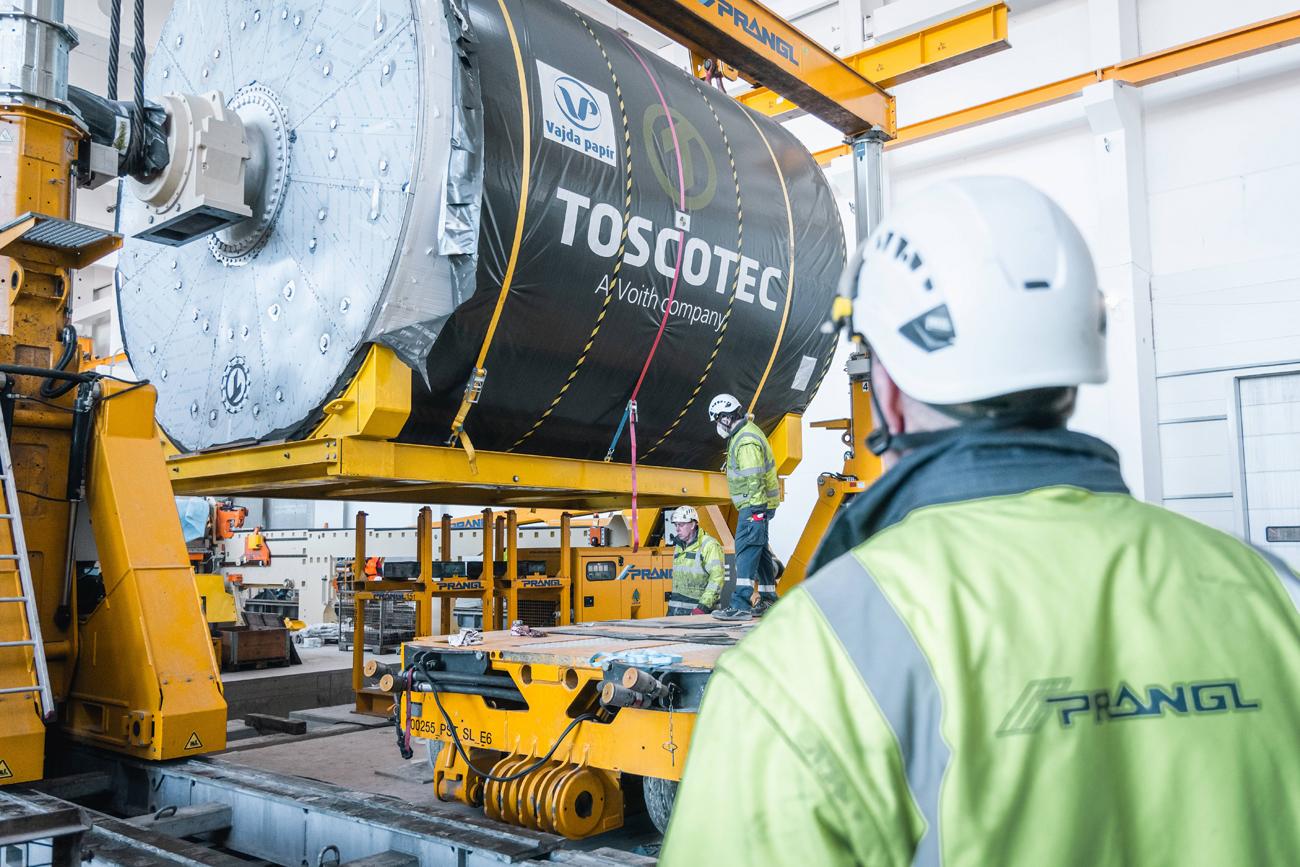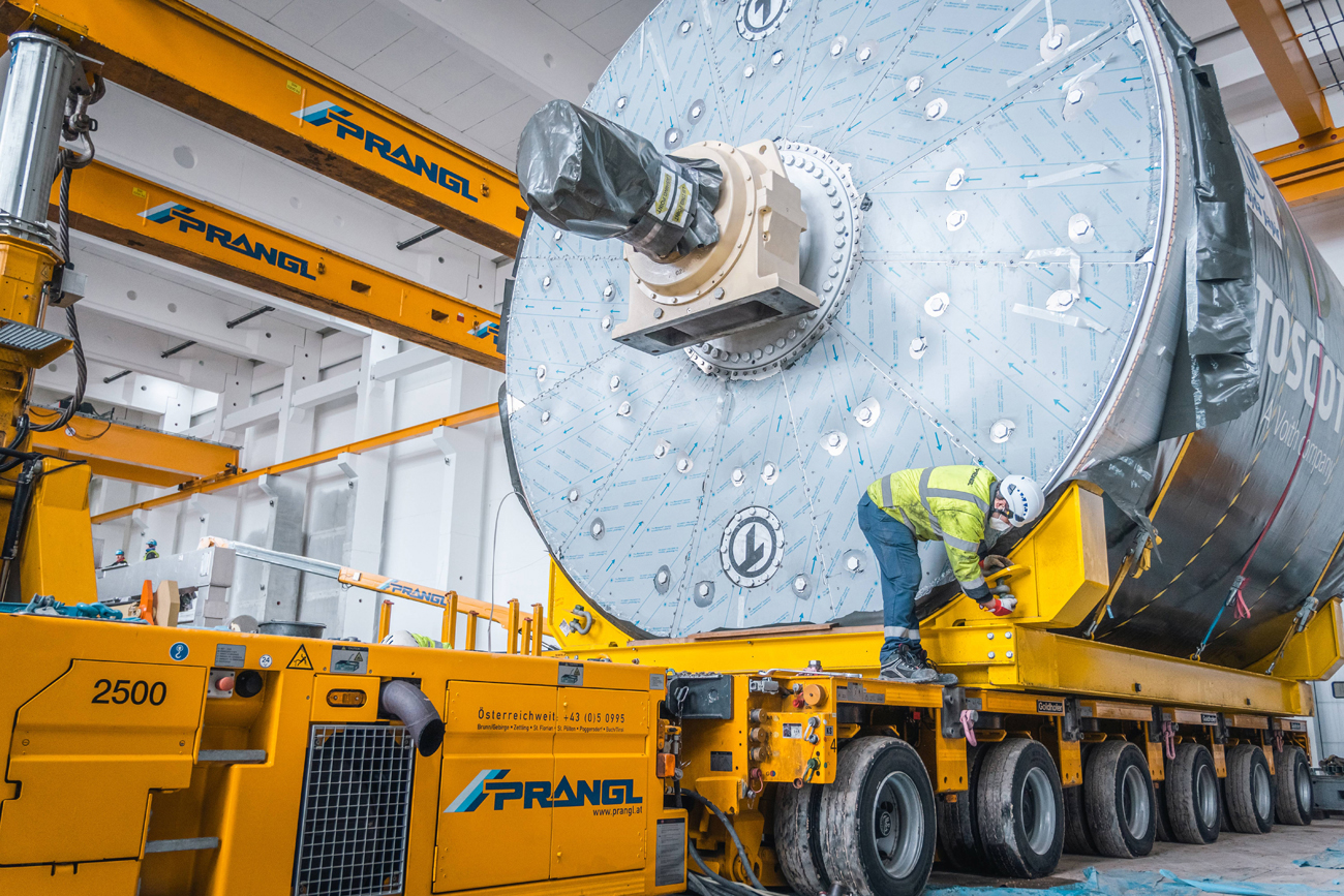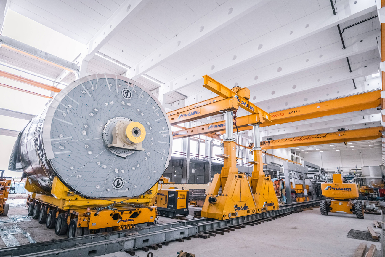 Prangl specialists were sent for to help with the expansion of a paper mill in Dunaföldvár, Hungary. A 145-tonne Yankee cylinder for drying paper had to be brought into the hall and “threaded” into its location - in the truest sense of the word. This was because space was in short supply due to the prepared installations.