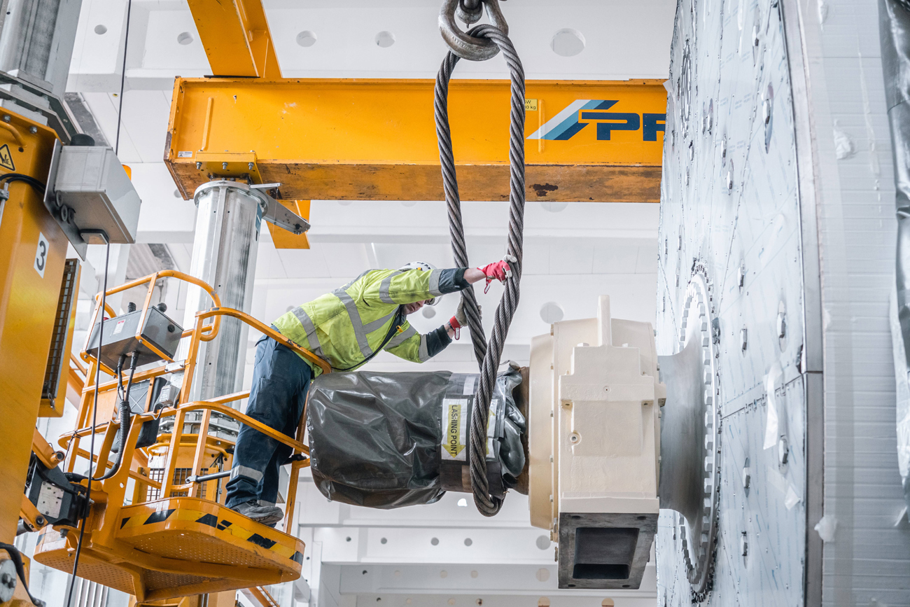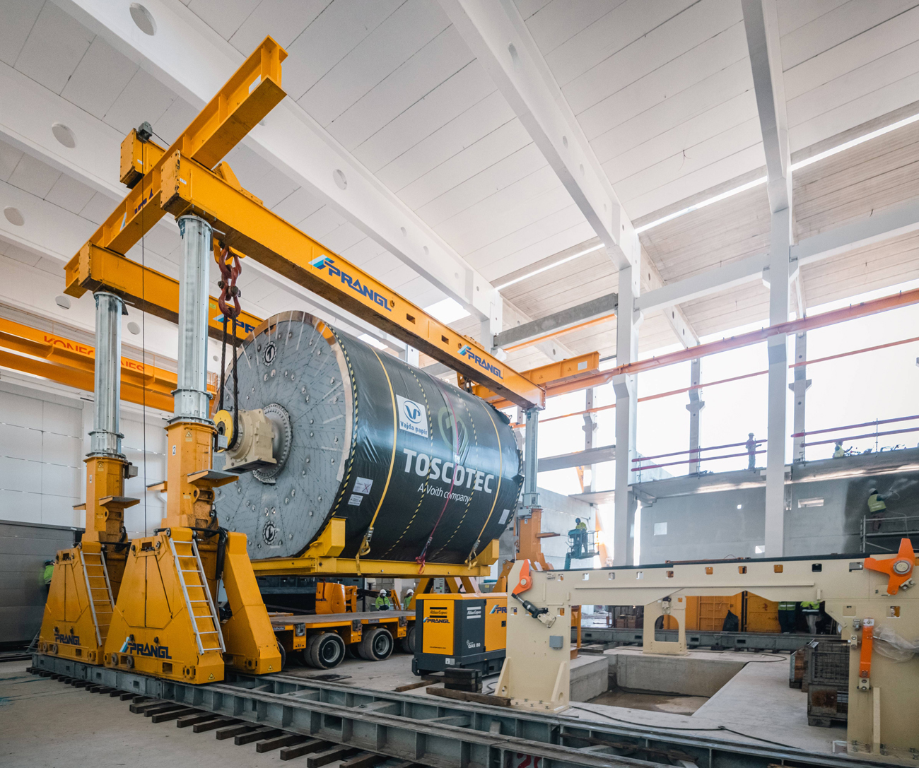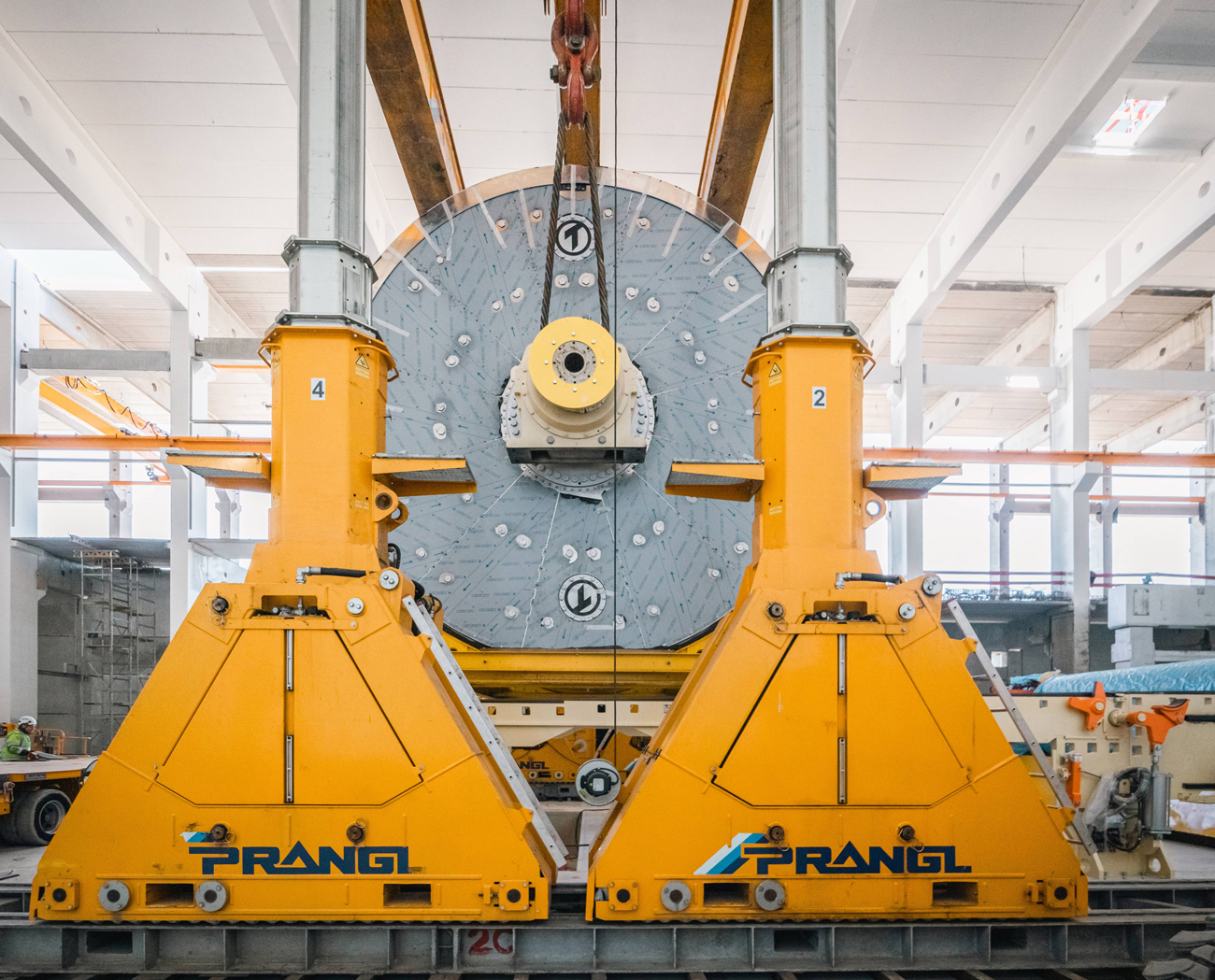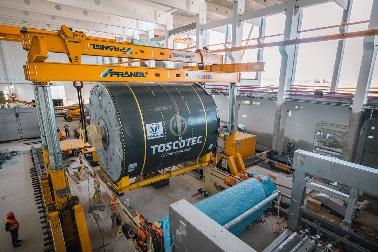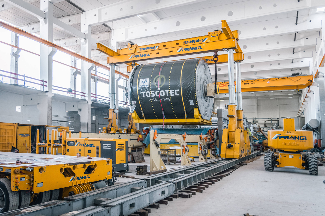 Prangl specialists were sent for to help with the expansion of a paper mill in Dunaföldvár, Hungary. A 145-tonne Yankee cylinder for drying paper had to be brought into the hall and “threaded” into its location - in the truest sense of the word. This was because space was in short supply due to the prepared installations.