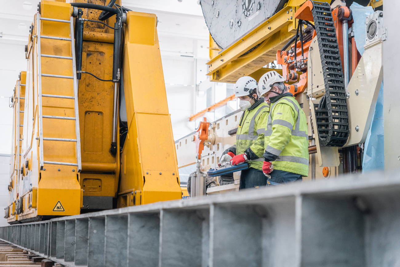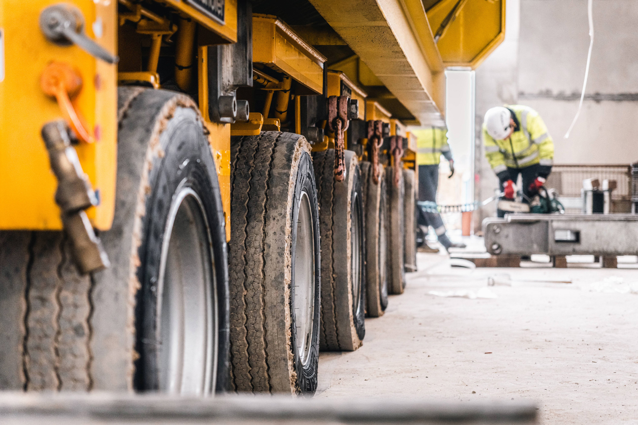 As with all tasks assigned to Prangl, the experts had to decide on suitable devices when planning the process. It quickly became clear that the key player in this case was going to be a hydraulic gantry. This is not only optimal for limited, tight spaces, it also makes precise positioning of the load possible with its multiple telescopic hydraulic jacks and a special rail system. A forklift truck, a scissor lift and three articulating boom lifts were also used as assistants.